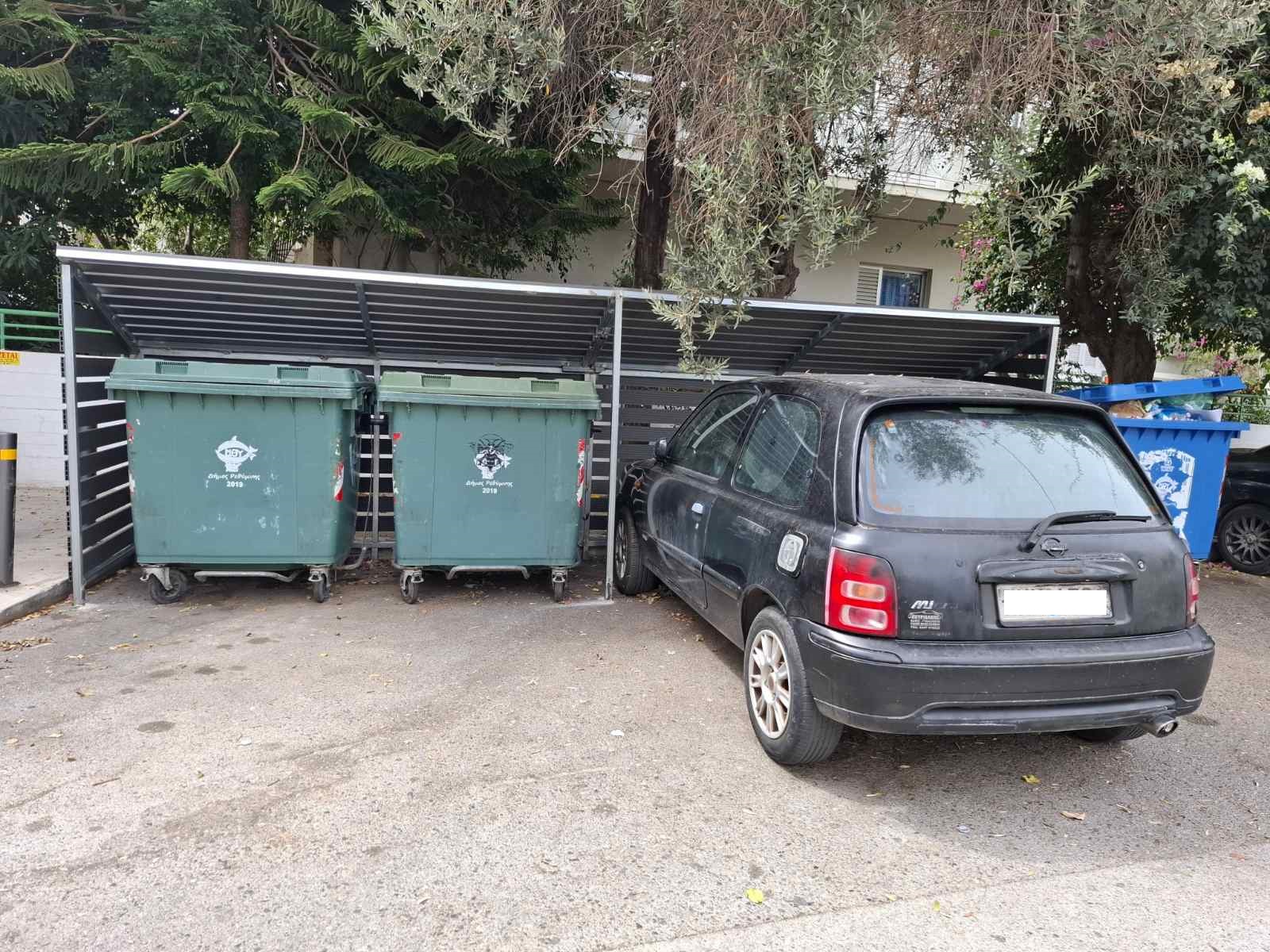 Έχουν δίκιο όσοι λένε ότι υπάρχουν πράγματα δεν θέλουν κόπο, αλλά τρόπο, όμως ακόμα κι αυτό έχει τα όριά του! Ο λόγος για τον οδηγό του συγκεκριμένου οχήματος που μετέτρεψε το στέγαστρο των κάδων σε ιδιωτικό πάρκινγκ. Όπως δείχνουν και οι φωτογραφίες δεν χρειάστηκε να κουραστεί πολύ. Πρώτα μετακίνησε το μπλε κάδο εκτός στεγάστρου και κατόπιν γύρισε στο πλάι και τον καφέ κάδο, προκειμένου να χωρέσει το αυτοκίνητό του και να το παρκάρει.