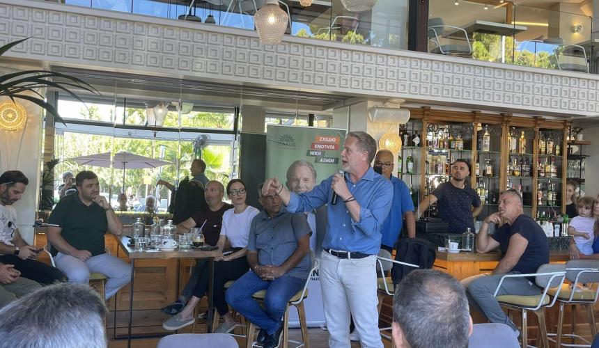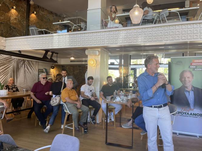 Με φίλους και στελέχη του ΠΑΣΟΚ στο Ρέθυμνο συναντήθηκε σήμερα το μεσημέρι (26/09) ο υποψήφιος πρόεδρος του ΠΑΣΟΚ Παύλος Γερουλάνος. Ο κ. Γερουλάνος τόνισε την ανάγκη αντιπολίτευσης στην «ανάλγητη πολιτική» της κυβέρνησης Μητσοτάκη υπογραμμίζοντας ότι ο ίδιος μπορεί να εγγυηθεί την ενότητα του κόμματος την επόμενη μέρα.