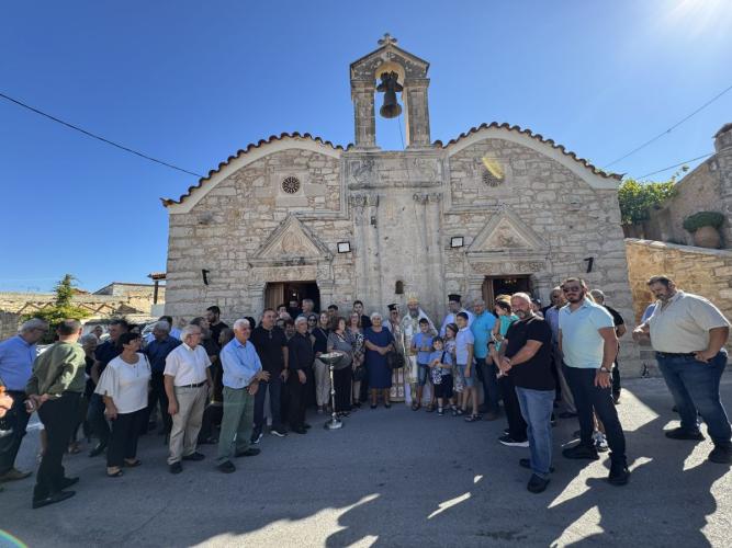 Προ της απολύσεως της Θείας Λειτουργίας, ο Σεβασμιώτατος, με θερμούς και επαινετικούς λόγους, αναφέρθηκε στον επί 49 έτη Εφημέριο της Ενορίας, Αιδεσ. Πρωτ. Βασίλειο Βασιλάκη, ο οποίος πλέον, κατόπιν αιτήσεώς του, περιέρχεται εκ των εν ενεργεία στους συνταξιούχους κληρικούς της Ιεράς Μητροπόλεως Ρεθύμνης και Αυλοποτάμου. Ο Σεβασμιώτατος αναφέρθηκε στο εκκλησιαστικό ήθος, παράστημα και φρόνημα του π. Βασιλείου, τονίζοντας ότι είναι από τις ολίγες περιπτώσεις, κατά τις οποίες ένας Εφημέριος διέρχεται ολόκληρη την ιερατική του πορεία σε μία Ενορία, και τούτο σημαίνει ότι και ο ίδιος αγάπησε πολύ, αλλά και αγαπήθηκε πολύ από τους ανθρώπους.