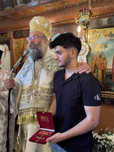 Ο Σεβασμιώτατος, τέλος, τιμώντας την πολυετή προσφορά του π. Βασιλείου στην Τοπική μας Εκκλησία και στην Ενορία των Πλευριανών, του επέδωσε την Ανωτάτη Τιμητική Διάκριση της Ιεράς Μητροπόλεώς μας, ήτοι τον Σταυρό των εν Ρεθύμνη Αγίων Τεσσάρων Νεομαρτύρων, Μανουήλ, Αγγελή, Γεωργίου και Νικολάου, ευχόμενος πάντοτε η Χάρη των Αγίων να σκέπει και να ευλογεί τη ζωή και τη διακονία του.