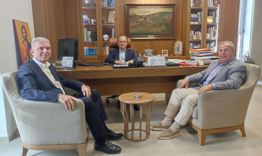 Ο Δήμαρχος Ρεθυμνης κ. Γιώργης Χ. Μαρινάκης δέχθηκε σήμερα εθιμοτυπική επίσκεψη από τον Πρόεδρο του Δ.Σ. του Πολεμικού Μουσείου, Αντιπτέραρχο ε.α. Κωνσταντίνο Καραμεσίνη και τον Β’ Αντιπρόεδρο του Δ.Σ. του Πολεμικού Μουσείου, Αντιστράτηγο ε.α. Ιωάννη Τζουνάκο.