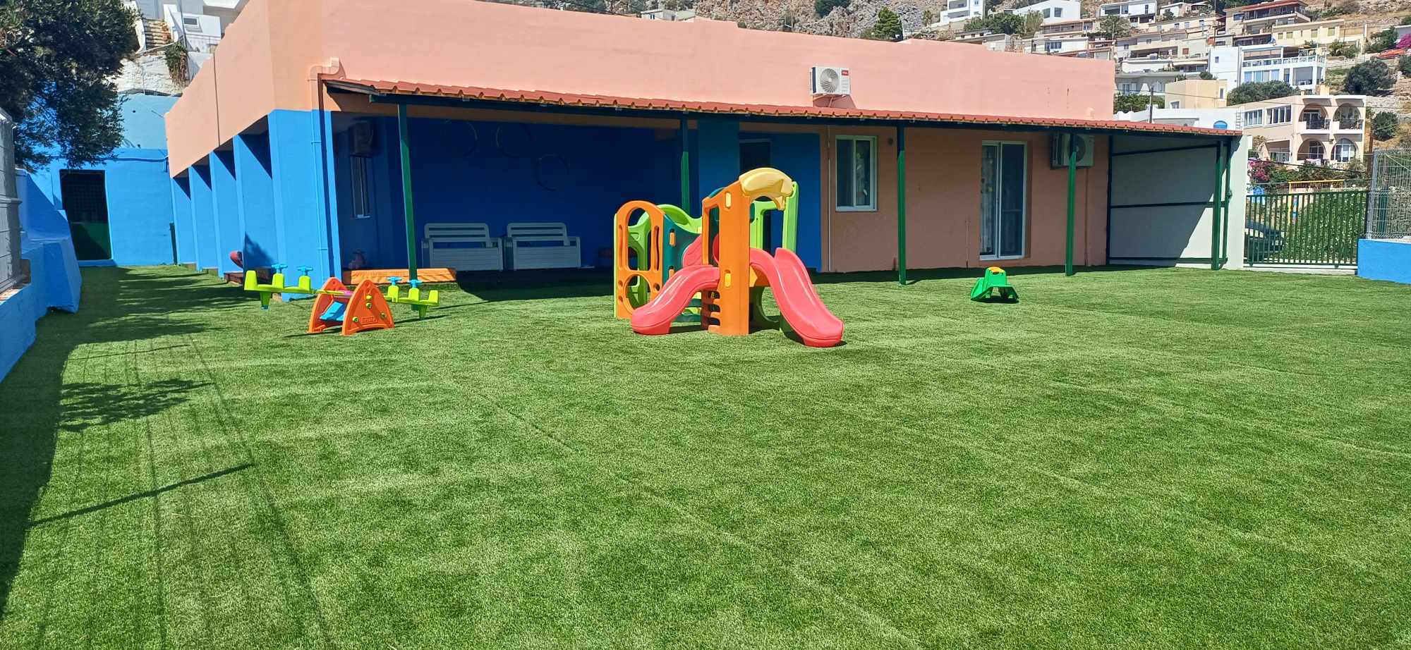 -Τοποθέτηση πλαστικού χλοοτάπητα στους αύλειους χώρους.