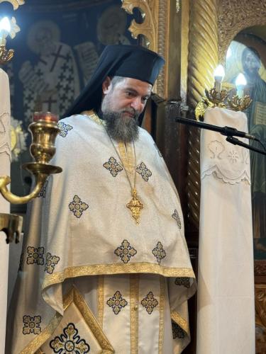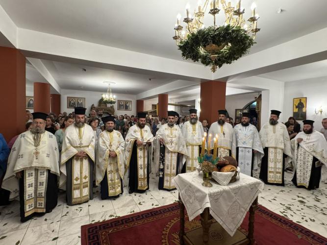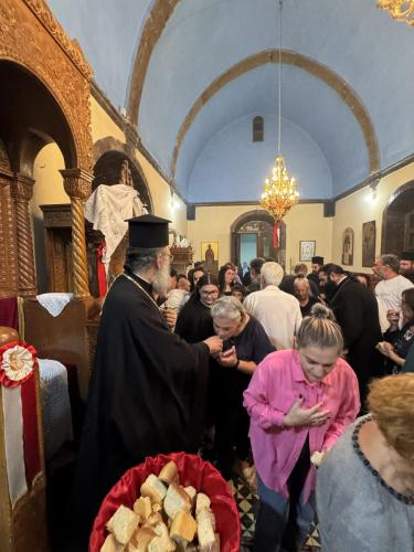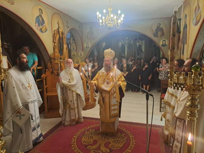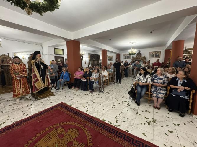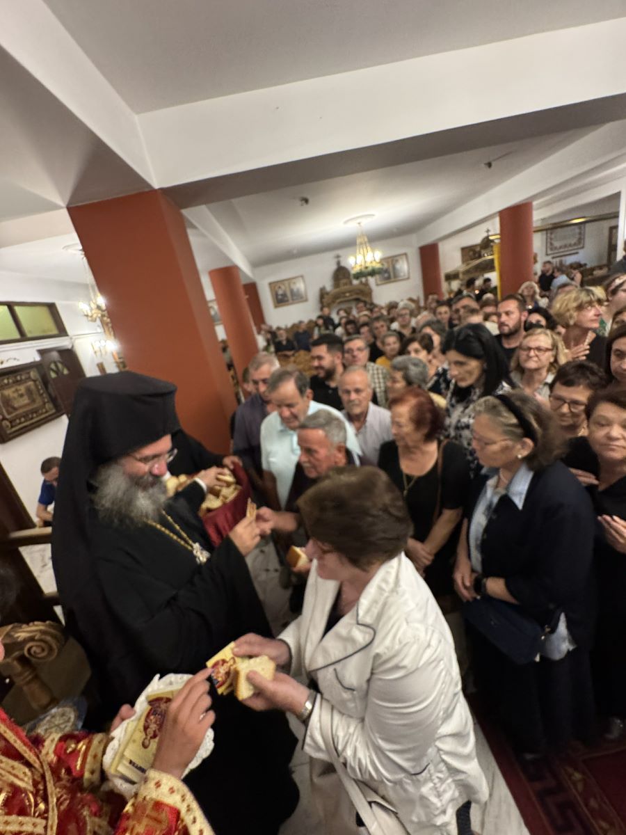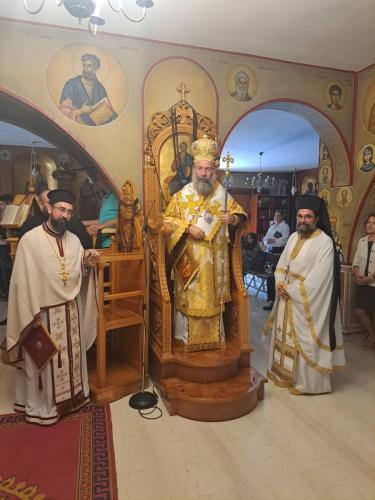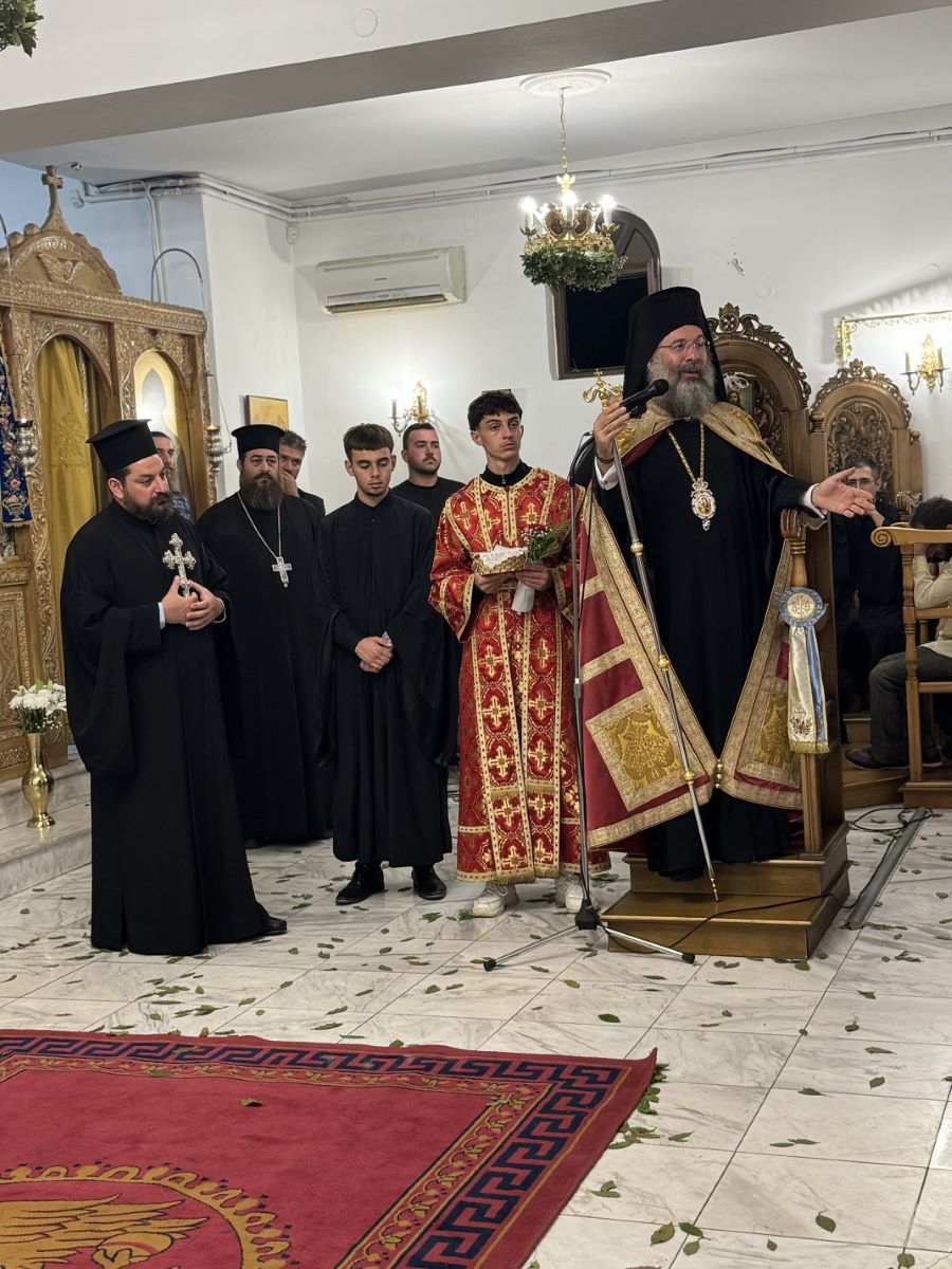 Ο Σεβασμιώτατος, στην προσλαλιά του, αναφέρθηκε στην παρουσία της Παναγίας στη ζωή όλου του κόσμου, στην απόκρισή Της στα διαρκή αιτήματά μας, καθώς και στο παράδειγμα της ταπεινής ζωής Της ως δρόμου για τη σωτηρία όλων μας. Ο Επίσκοπός μας επαίνεσε ιδιαίτερα τον Προϊστάμενο του Ιερού Ναού, Αιδεσιμολ. Πρωτ. Γεώργιο Γαλεράκη, ο οποίος, όπως είπε, «ανέστησε» την Ενορία αυτή και συνήγαγε όλους τους ανθρώπους και πάλι στην αγκαλιά της Παναγίας μας, εξαίροντας το επιτελούμενο ενοριακό έργο και τους καλούς συνεργούς σε αυτό, το Εκκλησιαστικό Συμβούλιο, τους Ιεροψάλτες και τους εθελοντές.