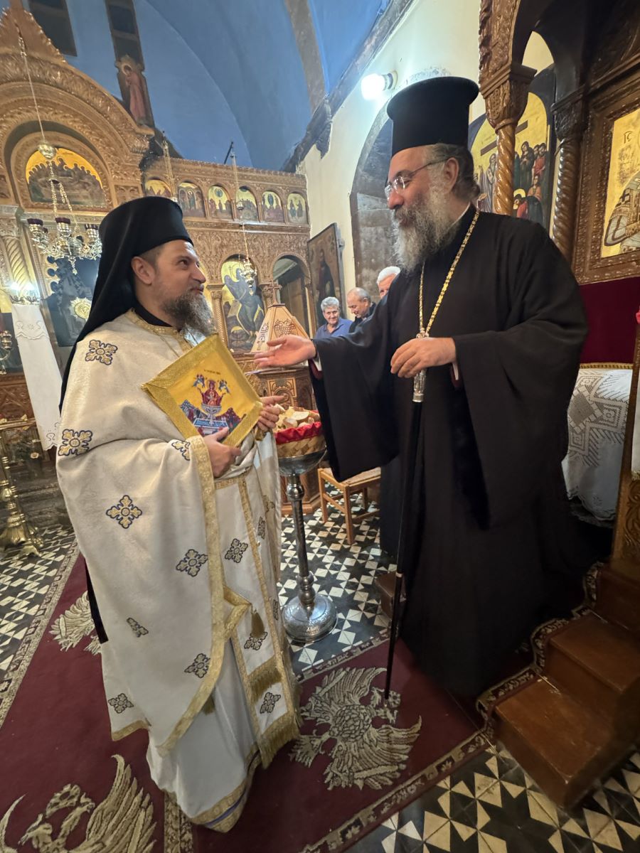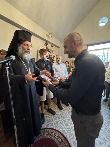 Προ της απολύσεως της Θείας Λειτουργίας, ο Σεβασμιώτατος Ποιμενάρχης μας κ. Πρόδρομος απευθύνθηκε καταλλήλως προς τον π. Ρωμανό, ευχόμενος σε εκείνον διαρκή τον φωτισμό του Θεού για την αξιοποίηση των χαρισμάτων του εντός της Εκκλησίας και ευχαριστώντας τον για την πολύτιμη διακονία του στην Τοπική μας Εκκλησία.