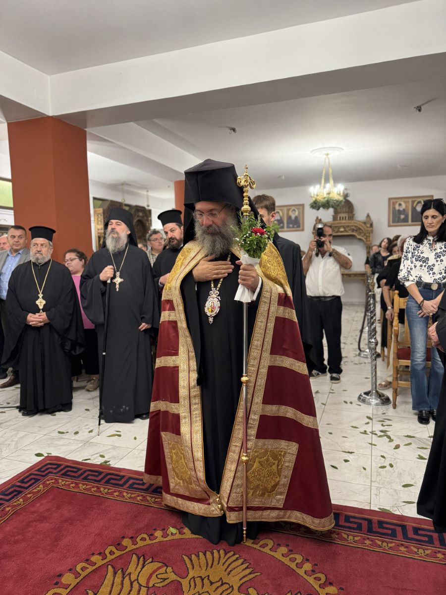 Το απόγευμα της Δευτέρας, 30ής Σεπτεμβρίου 2024, ο Σεβασμιώτατος Μητροπολίτης Ρεθύμνης και Αυλοποτάμου κ. Πρόδρομος μετέβη στον πανηγυρίζοντα ιδιωτικό Ιερό Ναό Παναγίας Θεραπευούσης, στην Ενορία Ατσιποπούλου, όπου συμπροσευχήθηκε κατά τον Εσπερινό και ομίλησε κατάλληλα προς το εκκλησίασμα για τη διαρκή παρουσία της Παναγίας στη ζωή όλων μας και τα θαυμάσιά Της στην πορεία του κόσμου «προς το συμφέρον της αιτήσεως», επαινώντας τον κ. Στυλιανό Κατσάνη, κτήτορα του εν λόγω Ιερού Ναού.