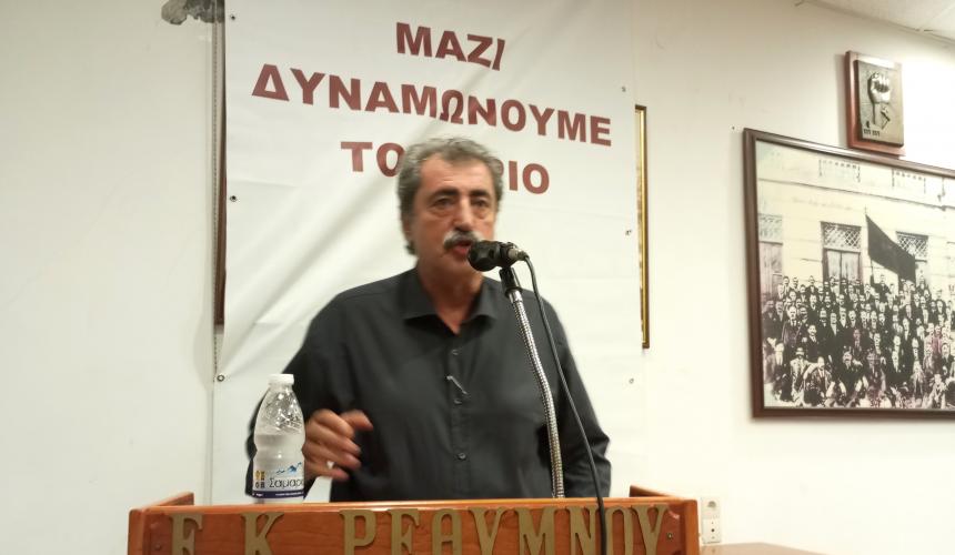 Στην κατάμεστη από κόσμο αίθουσα του Εργατικού Κέντρου Ρεθύμνου, το βράδυ της Δευτέρας, με πολλά στελέχη να έχουν γεμίσει τον προθάλαμο, τους διαδρόμους και να βρίσκονται έως έξω από τον χώρο της εκδήλωσης, ο Παύλος Πολάκης έκανε λόγο για την ανάγκη ανασυγκρότησης του ΣΥΡΙΖΑ για να ξαναγίνει η κυβερνώσα δύναμη του μέλλοντος.