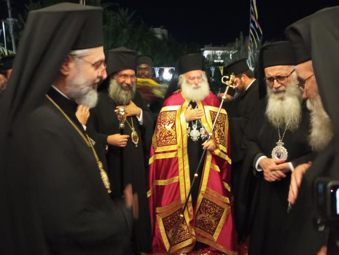 Παρέστησαν επίσης ο Εκπρόσωπος του Οικουμενικού Πατριάρχη, Μητροπολίτης Ανέων κ. Μακάριος, ο Εκπρόσωπος του Αρχιεπισκόπου Αθηνών, Επίσκοπος Θεσπιών κ. Παύλος, ο Μητροπολίτης Προικοννήσου κ. Ιωσήφ, ο Μητροπολίτης Αμορίου κ. Νικηφόρος, ο Μητροπολίτης Μπραζαβίλ και Γκαμπόν κ. Θεόδωρος, ο Μητροπολίτης Λάμπης, Συβρίτου και Σφακίων κ. Ειρηναίος και ο Μητροπολίτης Κισσάμου και Σελίνου κ. Αμφιλόχιος.