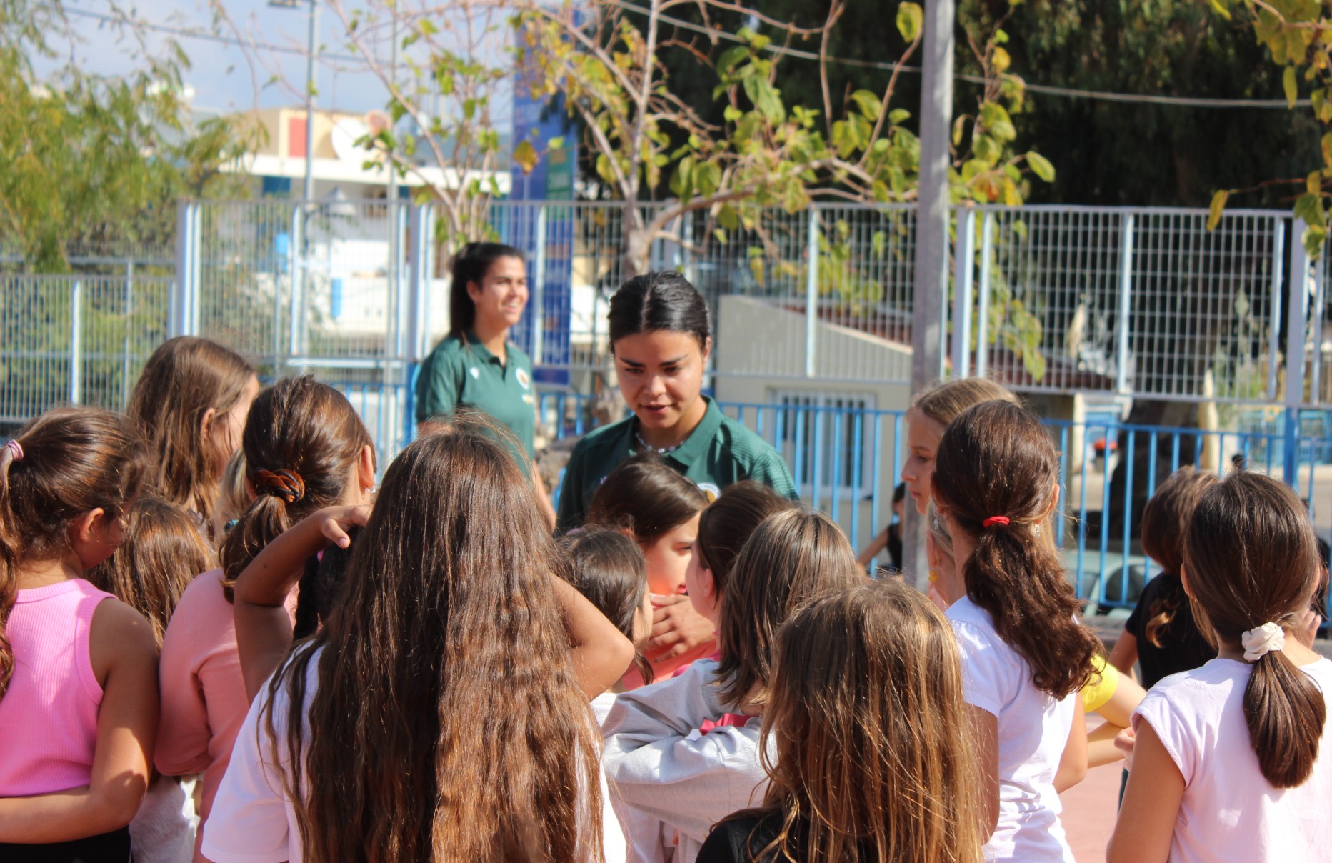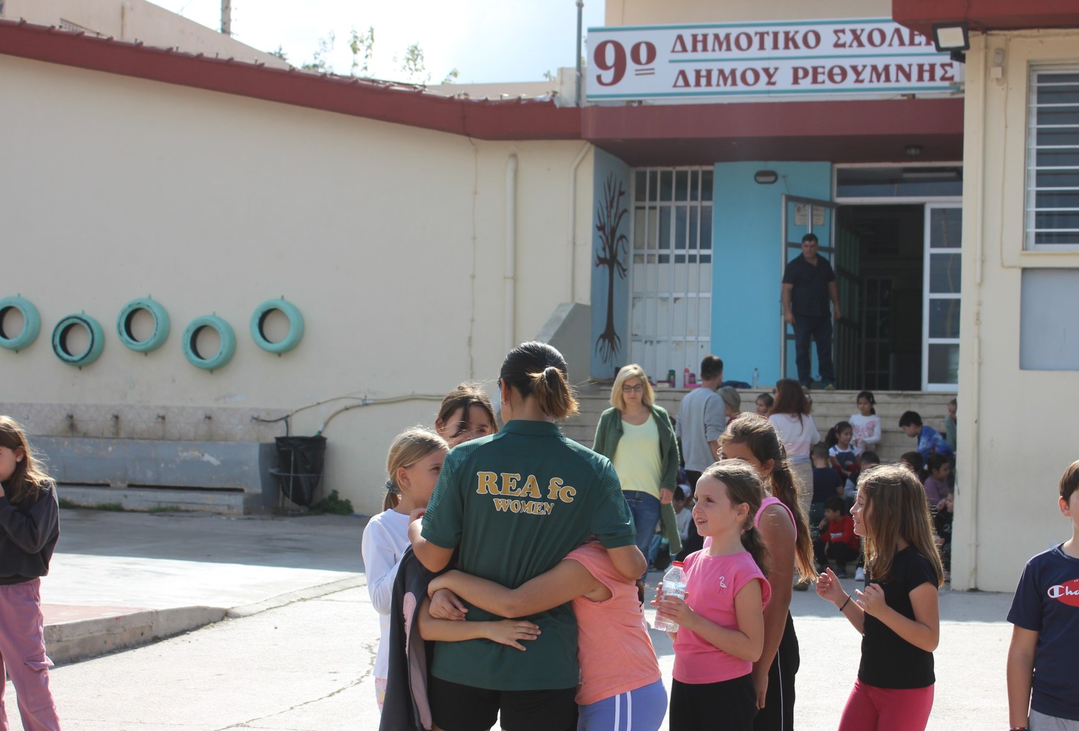 Ο κ. Ηρακλής Μανουκαράκης μίλησε για τη σημασία της άσκησης και της διατροφής, ποια είναι η Ρ.Ε.Α. και τι εκπροσωπεί. Μάλιστα, προσκάλεσε όλα τα παιδιά και τους δασκάλους στην εντός έδρας αναμέτρηση της ομάδας μας το ερχόμενο Σάββατο 2 Νοεμβρίου (12.00) στο γήπεδο των Μισιρίων, όπου θα αντιμετωπίσει την Κηφισιά για την 3η αγωνιστική της Women’s Football League.