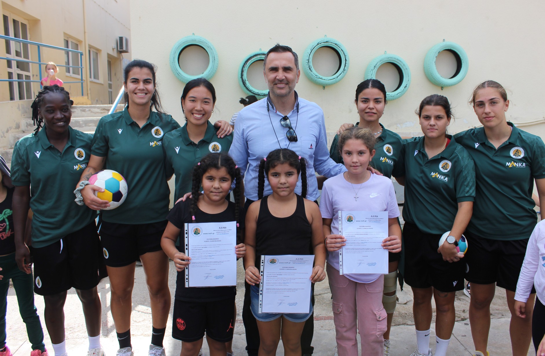 Όμως, τρία μεγάλα δώρα δόθηκαν στο φινάλε της επίσκεψης και μετά τα ποδοσφαιρικά παιχνίδια με τις αθλήτριες μας και αφορούσε σε 3 νεαρές μαθήτριες. Οι μικρές Ειρήνη, Παναγιώτα και Αντίσα επιλέχθηκαν για να λάβουν 3 υποτροφίες για την Ακαδημία της Ρ.Ε.Α., συμμετέχοντας δωρεάν στις προπονήσεις των τμημάτων υποδομών μας.