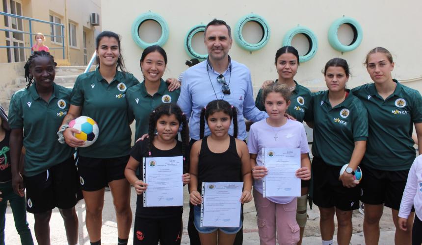 Η προσπάθεια ενημέρωσης και ανάπτυξης του ποδοσφαίρου Γυναικών συνεχίζεται μέσα από την κοινωνική μας δράση και τις επισκέψεις σε σχολεία της περιοχής μας. Αντιπροσωπεία της ομάδας μας αποτελούμενη από τον Πρόεδρο Ηρακλή Μανουκαράκη, τον Αντιπρόεδρο Γιώργο Τσόγκα και τις παίκτριες Τόπιστερ Σιτούμα, Ελευθερία Δαφέρμου, Σουζούκα Γιοσουέ, Δήμητρα Μαρκουτσά, Καρλότα Κρίστο και Ειρήνη Μανουκαράκη επισκέφθηκαν το σχολείο, με τους μικρούς μαθητές-τριες να τους υποδέχονται θερμά.