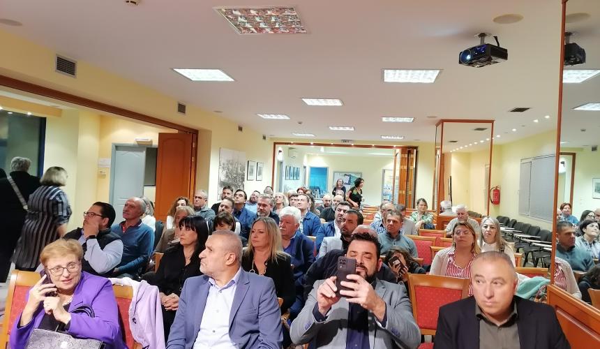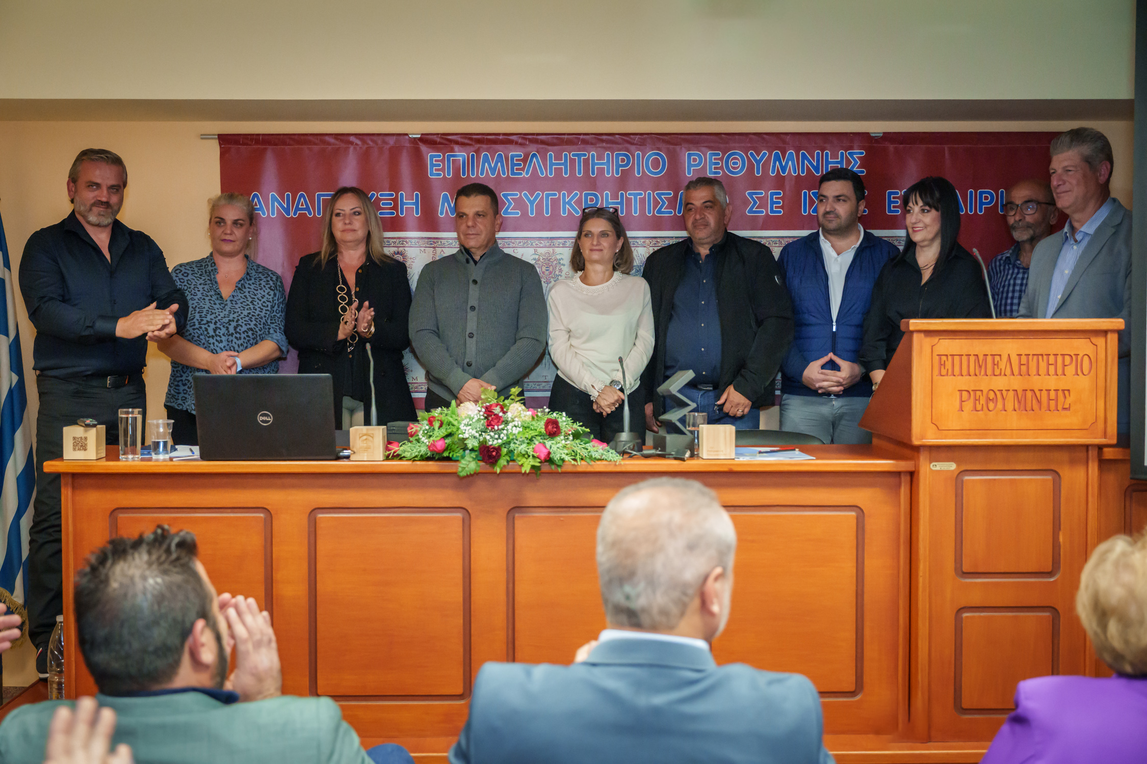 Στην αίθουσα έδωσαν το παρών, η Αντιπεριφερειάρχης Ρεθύμνου κα Μαίρη Λιονή, ο Θεματικός Αντιπεριφερειάρχης Επιχειρηματικότητας Περιφέρειας Κρήτης κ. Μιχάλης Βάμβουκας, η επικεφαλής της μείζονος αντιπολίτευσης του Δήμου Ρεθύμνου κα Ειρήνη Κουτσαλεδάκη, εκπρόσωποι συλλόγων και φορέων της Αυτοδιοίκησης και πλήθος κόσμου.