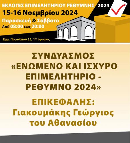 Σε μια κατάμεστη από μέλη του Επιμελητηρίου Ρεθύμνης αίθουσα εκδηλώσεων του, πραγματοποιήθηκε το βράδυ της Τετάρτης, 6 Νοεμβρίου η παρουσίαση των 42 υποψηφίων του συνδυασμού : «Ενωμένο και ισχυρό Επιμελητήριο – Ρέθυμνο 2024» από τον επικεφαλής του, κ. Γιώργο Γιακουμάκη. Πρόκειται για ενωτικό συνδυασμό, ο οποίος περιλαμβάνει τόσο μέλη της απερχόμενης διοίκησης όσο και υποψήφιους οι οποίοι κατέρχονται για πρώτη φορά στις εκλογές του. Ειδικότερα, στο σύνολο των σαράντα δύο υποψηφίων, οι εικοσιπέντε είναι νέοι υποψήφιοι, ενώ οι δέκα είναι γυναίκες επιχειρηματίες.
