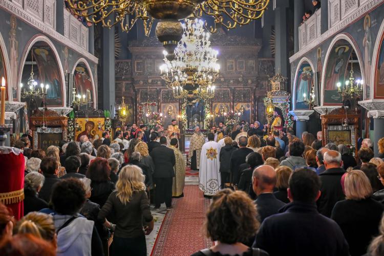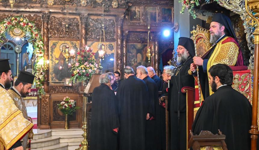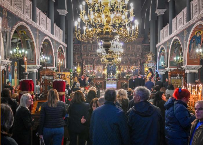 Πλήθος κόσμου κατέκλεισε τον ιστορικό Ιερό Ναό της Μητρόπολης, όπου μετά το πέρας του εσπερινού τελέστηκε παράκληση προς την Θεοτόκο.