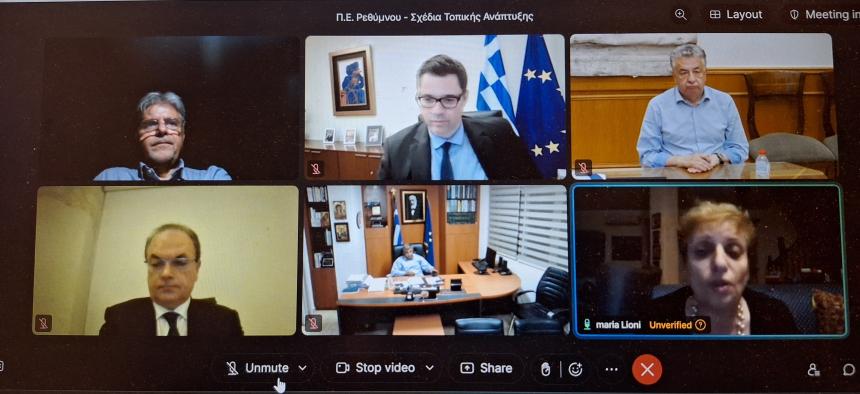 Η τηλεδιάσκεψη οργανώθηκε στο πλαίσιο εκπόνησης της Εθνικής Στρατηγικής Περιφερειακής και Τοπικής Ανάπτυξης που παρουσίασε πρόσφατα ο Πρωθυπουργός και συμμετείχαν ο Υφυπουργός Εθνικής Άμυνας, Βουλευτής Ρεθύμνου κ. Γιάννης Κεφαλογιάννης, ο Περιφερειάρχης Κρήτης κ. Σταύρος Αρναουτάκης, η Αντιπεριφερειάρχης Ρεθύμνου κ. Μαρία Λιονή, ο Δήμαρχος Ρεθύμνης κ. Γιώργης Μαρινάκης, ο Δήμαρχος Αμαρίου κ. Παντελής Μουρτζανός, ο Δήμαρχος Ανωγείων κ. Σωκράτης Κεφαλογιάννης, ο Αντιδήμαρχος Μυλοποτάμου κ. Σήφης Βουκάλης, ο Γενικός Γραμματέας του Δήμου Αγ. Βασιλείου κ. Νίκος Καλλιτσουνάκης και ο Γενικός Γραμματέας του Δήμου Ρεθύμνης κ. Μαρίνος Ρουσιάς.