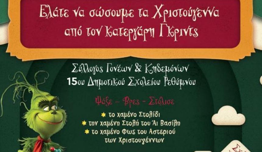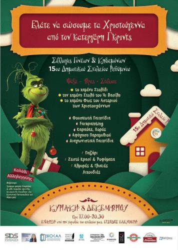 Με μεγάλη χαρά σας προσκαλούμε στη Χριστουγεννιάτικη Γιορτή του σχολείου μας, για να γιορτάσουμε όλοι μαζί την πιο μαγική εποχή του χρόνου, με θέμα: Ελάτε να σώσουμε τα Χριστούγεννα από τον Κατεργάρη Γκριντς!