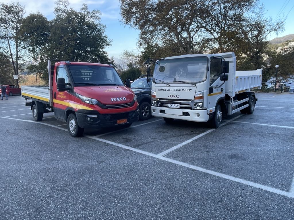 Δύο νέα οχήματα απέκτησε ο Δήμος Αγίου Βασιλείου για την κάλυψη των αναγκών των υπηρεσιών του συνολικού προϋπολογισμού 126.000 ευρώ εκ των οποίων 60.000 ευρώ καλύφθηκαν από χρηματοδότηση του Υπουργείου Εσωτερικών και τα υπόλοιπα από πόρους Δήμου.