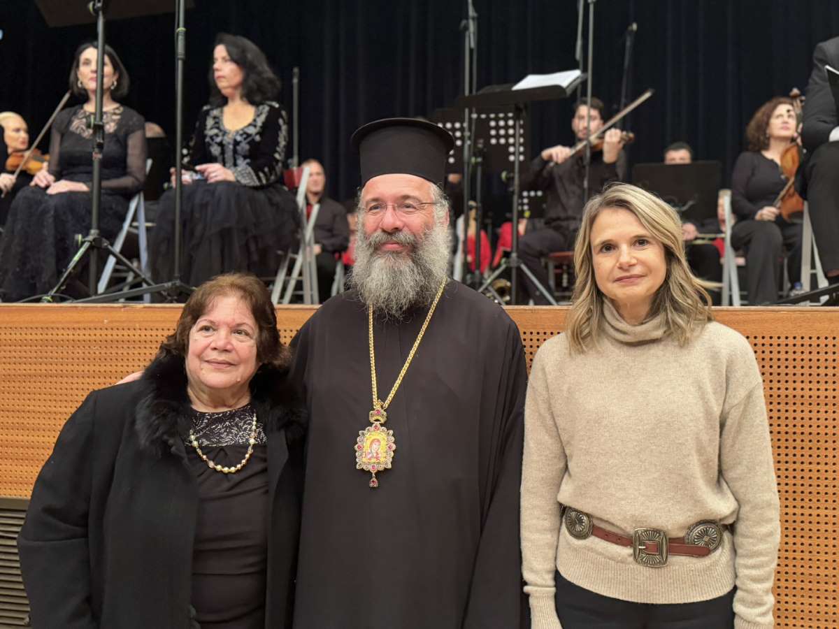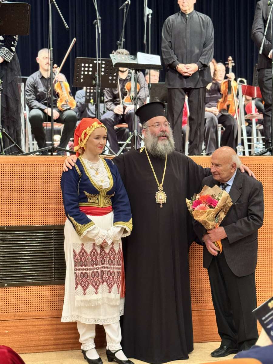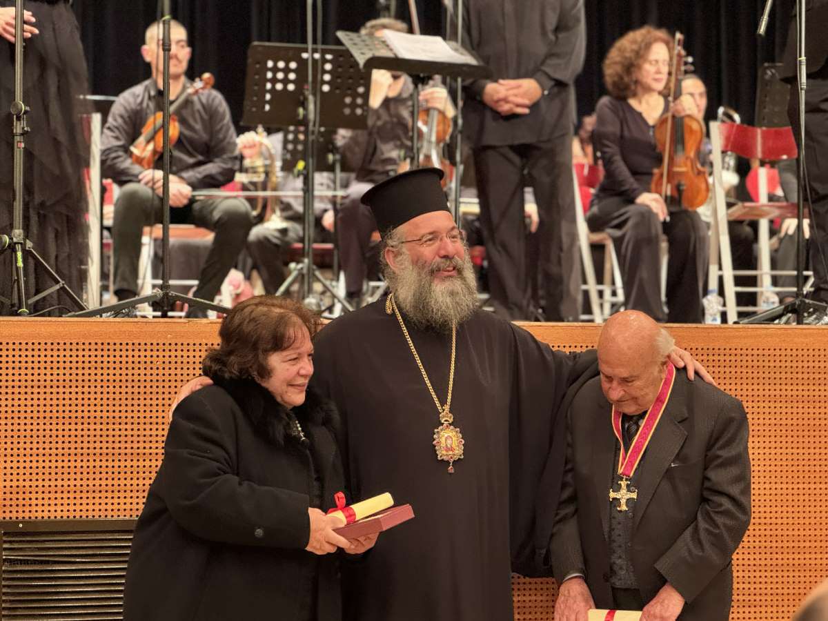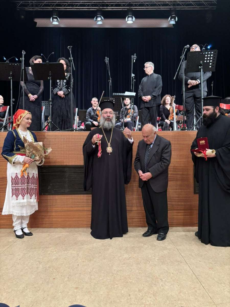 Επίσης, ο Σεβασμιώτατος επέδωσε εύφημο μνεία και επετειακή εικόνα στην κ. Εύα Λαδιά, ευχαριστώντας την για τη συνολική επιμέλεια αυτής της σπουδαίας εκδήλωσης.
