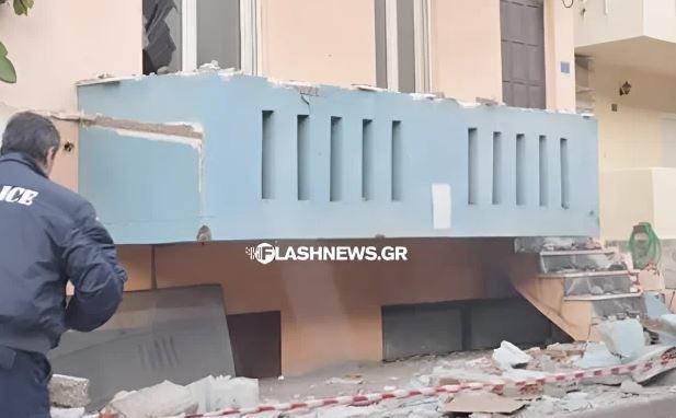 Ένα ολόκληρο μπαλκόνι αποκολλήθηκε από πολυκατοικία και έπεσε στο πεζοδρόμιο, με τα κομμάτια του τσιμέντου να διασκορπίζονται ολόγυρα.