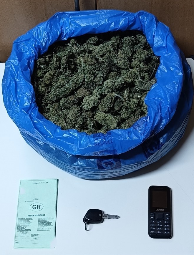 Κατά την έρευνα στο όχημα βρέθηκαν και κατασχέθηκαν 1 κιλό και 512 γραμμάρια κάνναβης και ένα κινητό τηλέφωνο.