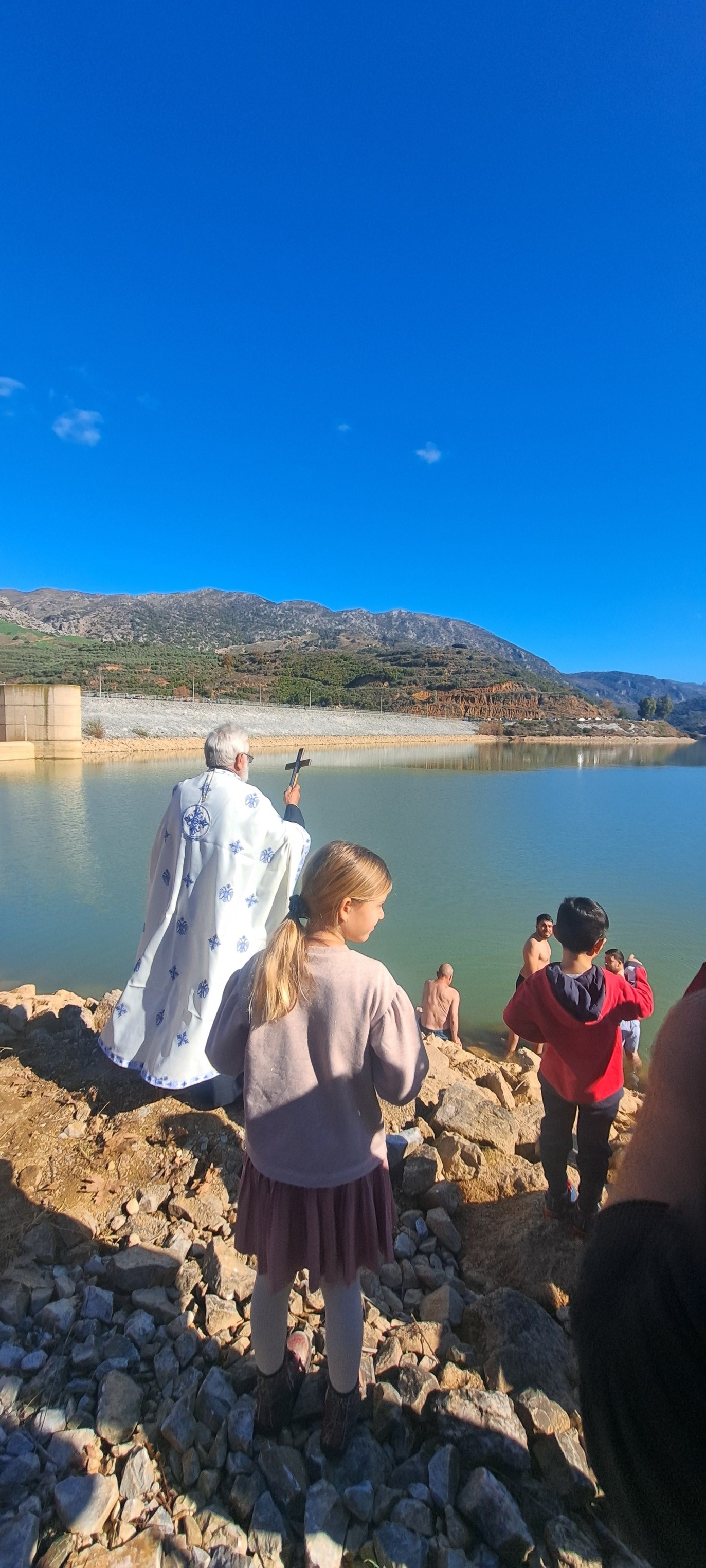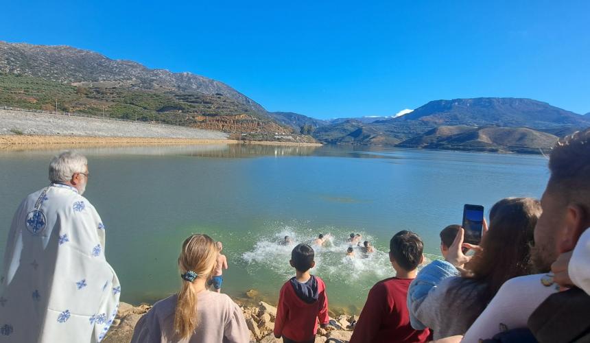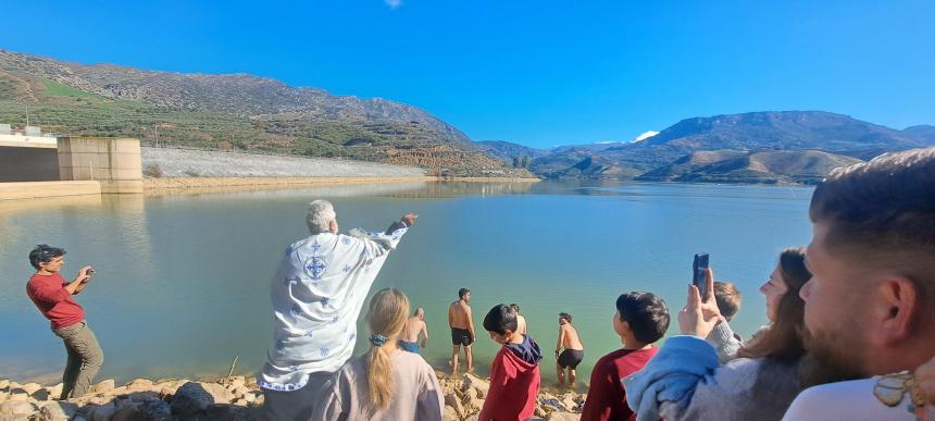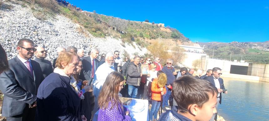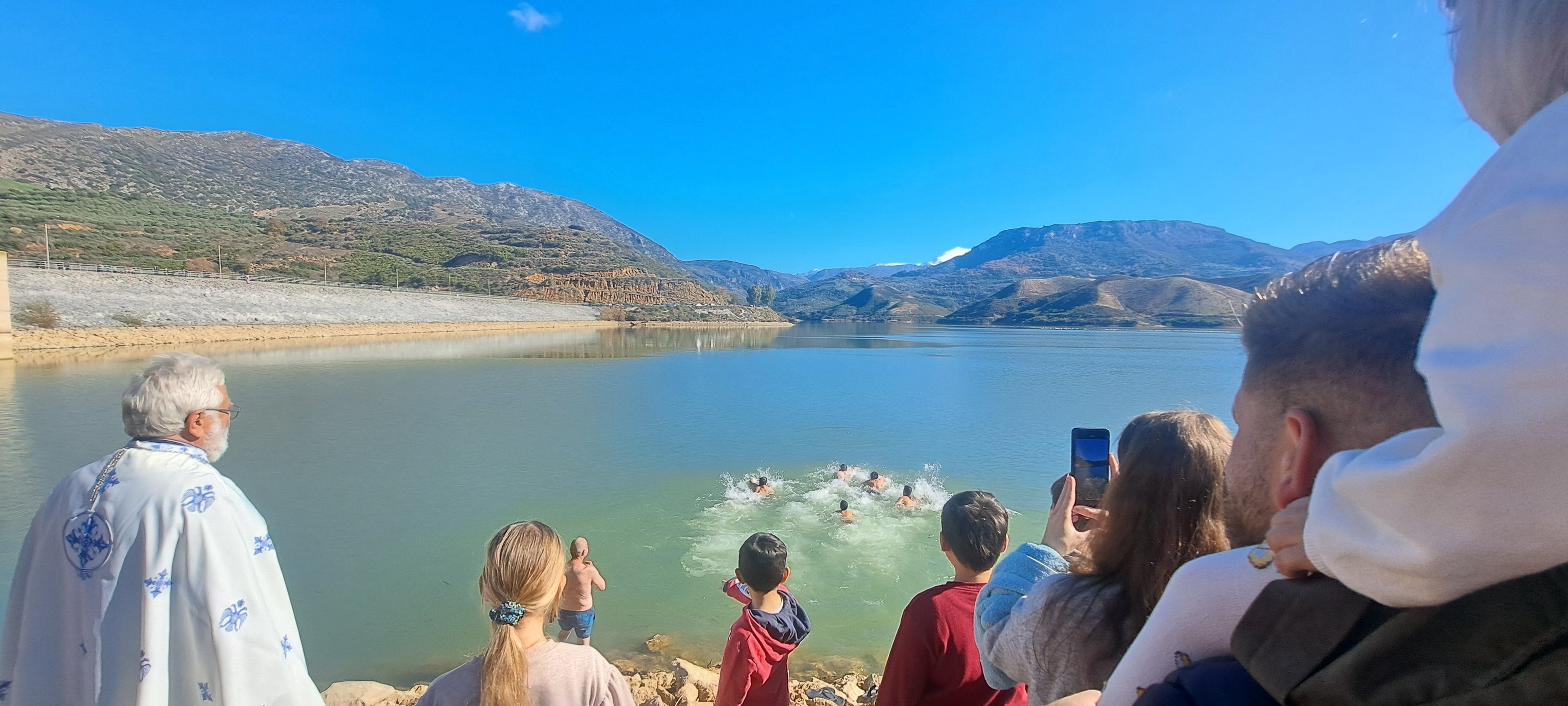 Πλήθος κόσμου παρευρέθηκε στην τελετή και δεν ήταν λίγοι οι θαρραλέοι βουτηχτές που μπήκαν στα παγωμένα νερά του φράγματος για να ανασύρουν τον Τίμιο Σταυρό.