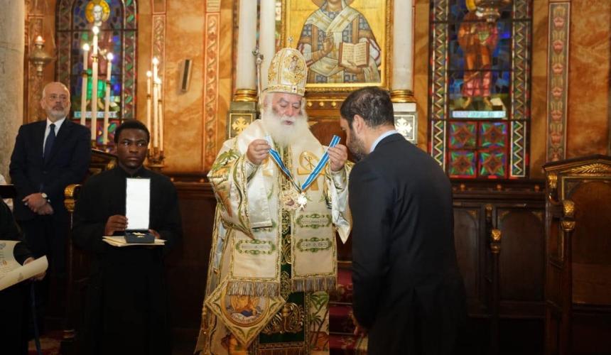 Η απονομή από την Α.Θ.Μ. τον Πάπα και Πατριάρχη Αλεξανδρείας και πάσης Αφρικής κ. κ. Θεόδωρο Β’, της Ανώτατης Διάκρισης του Πατριαρχείου της Αλέξανδρειας, τον Ανώτερο Ταξιάρχη της αρχαίας πατριαρχικής τάξεως παραβαλανέων Σάββα του Αγιασμένου μετ’ αστέρος, συνιστά για μένα ύψιστη τιμή.