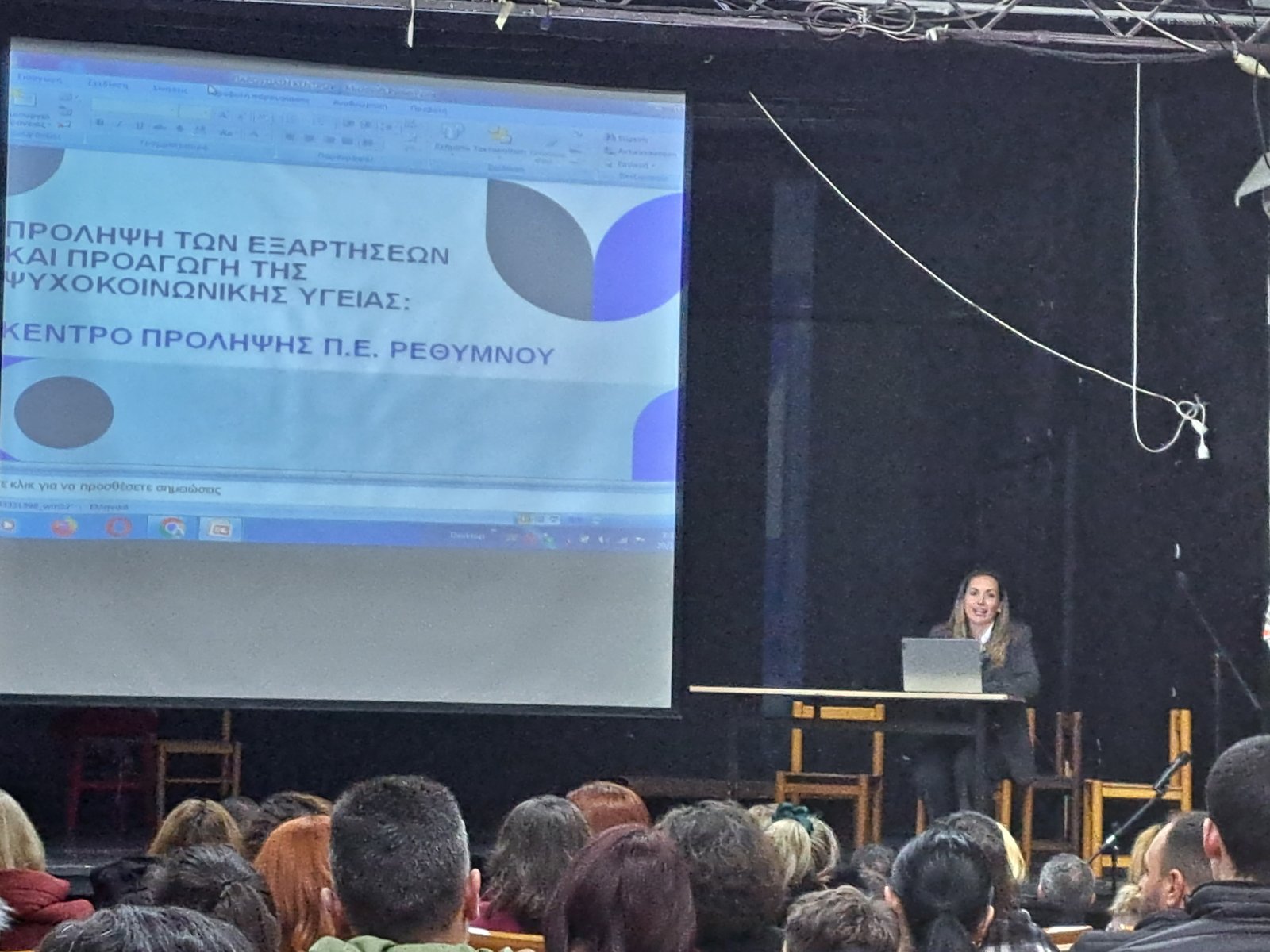 Τη Δευτέρα 20 Ιανουαρίου οι μαθητές και οι καθηγητές του Εσπερινού ΕΠΑΛ Ανωγείων παρευρεθήκαμε σε ομιλία με θέμα: «Γονεϊκή επιτρεπτικότητα. Οι συνέπειες της στην ψυχική υγεία των παιδιών», η οποία διοργανώθηκε από το Κέντρο Πρόληψης των εξαρτήσεων και προαγωγής της ψυχοκοινωνικής υγείας Π.Ε, Ρεθύμνου, σε συνεργασία με τον ΟΚΑΝΑ και τον δήμο Μυλοποτάμου. Η εκδήλωση πραγματοποιήθηκε στο Στέκι Νεολαίας Περάματος και κύρια ομιλήτρια ήταν η κα. Λύβια Κουτσάκη – Τρουλλινού.