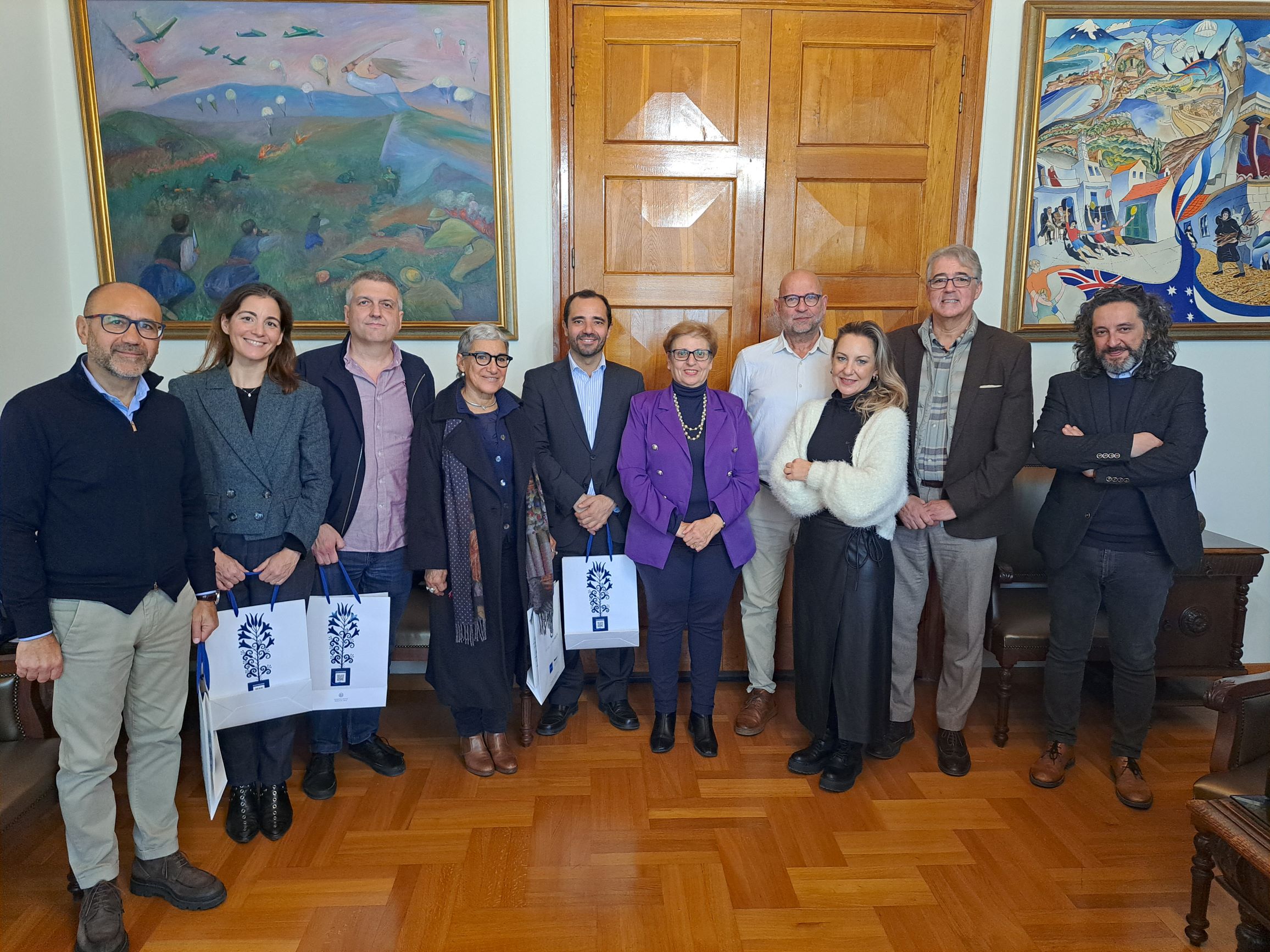 Στο πλαίσιο του προγράμματος των συναντήσεων, οι εταίροι του σχεδίου είχαν τη δυνατότητα να επισκεφθούν την Αντιπεριφερειάρχη Ρεθύμνου κα Μαρία Λιονή η οποία αναφέρθηκε στην εξωστρέφεια της Περιφέρειας με σημαντικές διακρατικές συνεργασίες καθώς και στη δικτύωση και τις πρωτοβουλίες που έχει αναπτύξει ειδικότερα στον τομέα της κοινωνικής οικονομίας. Παράλληλα επεσήμανε την ανάγκη επένδυσης στα αποτελέσματα του έργου και κυρίως στον αντίκτυπο των αποτελεσμάτων στις ορεινές περιοχές. Κατά τη διάρκεια της συνάντησης η κα Αντιπεριφερειάρχης είχε την ευκαιρία να ενημερωθεί για την πορεία υλοποίησης του έργου και παράλληλα να συζητήσουν με τους εταίρους αναφορικά με τις δράσεις που έχουν αναπτύξει στις περιοχές τους. ΟΙ εταίροι του έργου ευχαρίστησαν την Αντιπεριφερειάρχη Ρεθύμνου για τη συμβολή και τη συνεργασία της. Στο τέλος της συνάντησης οι εταίροι έλαβαν ως αναμνηστικό της επίσκεψης τους υλικό τουριστικής προβολής του Ρεθύμνου.
