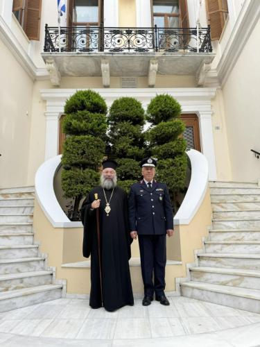 Την Τρίτη, 21η Ιανουαρίου 2025, ο Σεβασμιώτατος Μητροπολίτης Ρεθύμνης και Αυλοποτάμου κ. Πρόδρομος με χαρά δέχθηκε στο γραφείο του τον ενδοξώτατο Ταξίαρχο κ. Εμμανουήλ Παπαδάκη, μέχρι τούδε Αστυνομικό Διευθυντή Νομού Ρεθύμνης, ο οποίος, μετά τις πρόσφατες κρίσεις στην Ελληνική Αστυνομία, μετακινείται στη Γενική Περιφερειακή Αστυνομική Διεύθυνση Κρήτης, στη θέση του Βοηθού του Γενικού Περιφερειακού Αστυνομικού Διευθυντού Κρήτης, Υποστρατήγου κ. Νικολάου Σπυριδάκη.