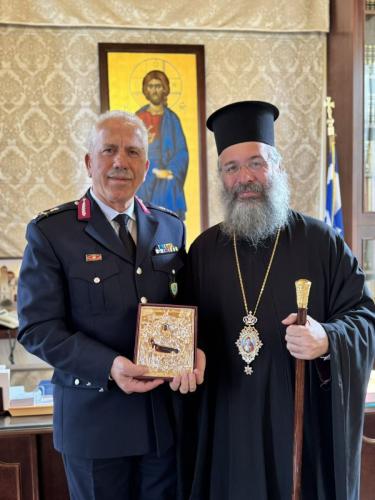 Ο Σεβασμιώτατος προσέφερε στον κ. Ταξίαρχο Ιερά Εικόνα της Παναγίας του Χάρακα και, συγχαίροντας για την προαγωγή του, ευχήθηκε καλή δύναμη και στα νέα ευθυνοφόρα καθήκοντά του.