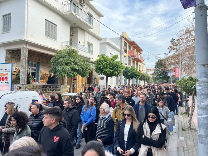 Πλήθος κόσμου συγκεντρώθηκε στην πλατεία Αγνώστου Στρατιώτη με αίτημα το έγκλημα που στοίχησε τη ζωή δεκάδων ανθρώπων από την σύγκρουση των δύο τραίνων στα Τέμπη πριν δύο χρόνια, να μην μείνει ατιμώρητο. Της συγκέντρωσης στην πλατεία Αγνώστου Στρατιώτη ακολούθησε πορεία στους κεντρικούς δρόμους της πόλης.