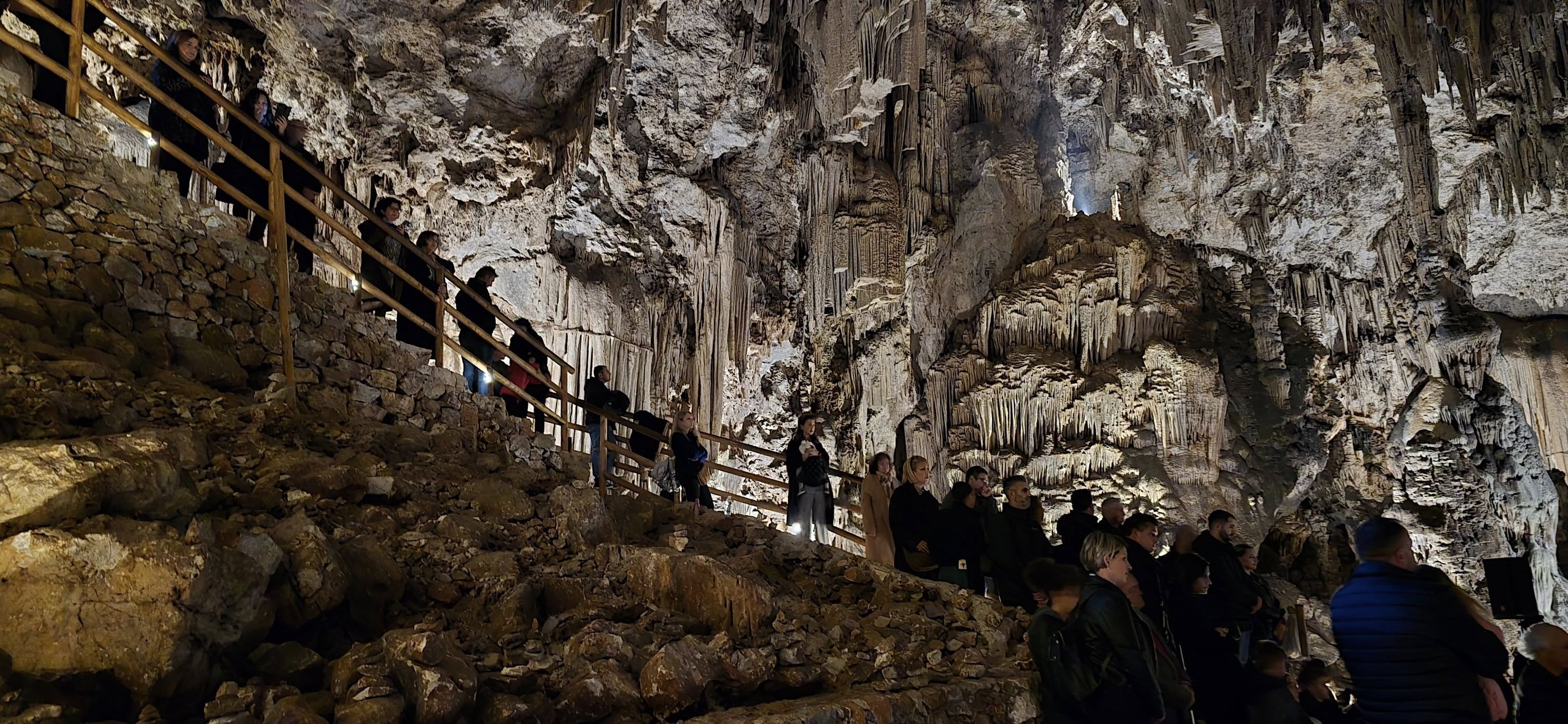 Καθώς προχωράμε , ογκώδεις βράχοι δίνουν το συναίσθημα ότι βρισκόμαστε σε μια άλλη γη και χωρίς να το καταλάβουμε , έχουμε φτάσει στην αίθουσα "Των βράχων" όπου μέσα από ένα στενό διάδρομο θα οδηγηθούμε στο "Θάλαμο της Καταβόθρας" και μετά από αυτό το οδοιπορικό καταφθάνουμε στο τέλος της δεξιάς λωρίδας που ονομάζεται "Το Υπερώον".