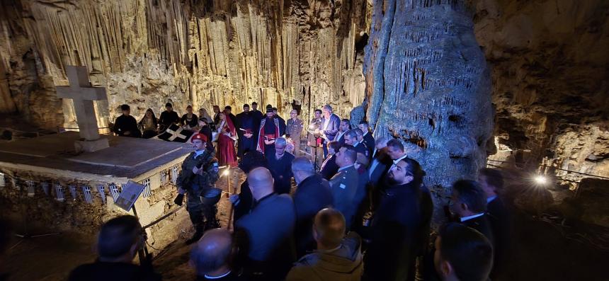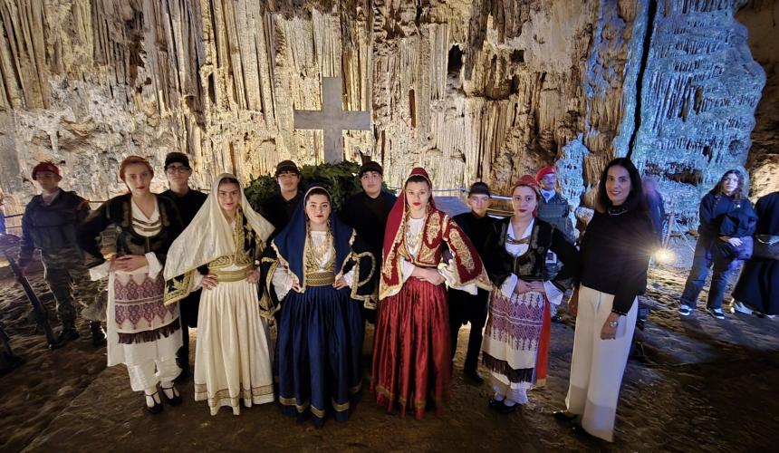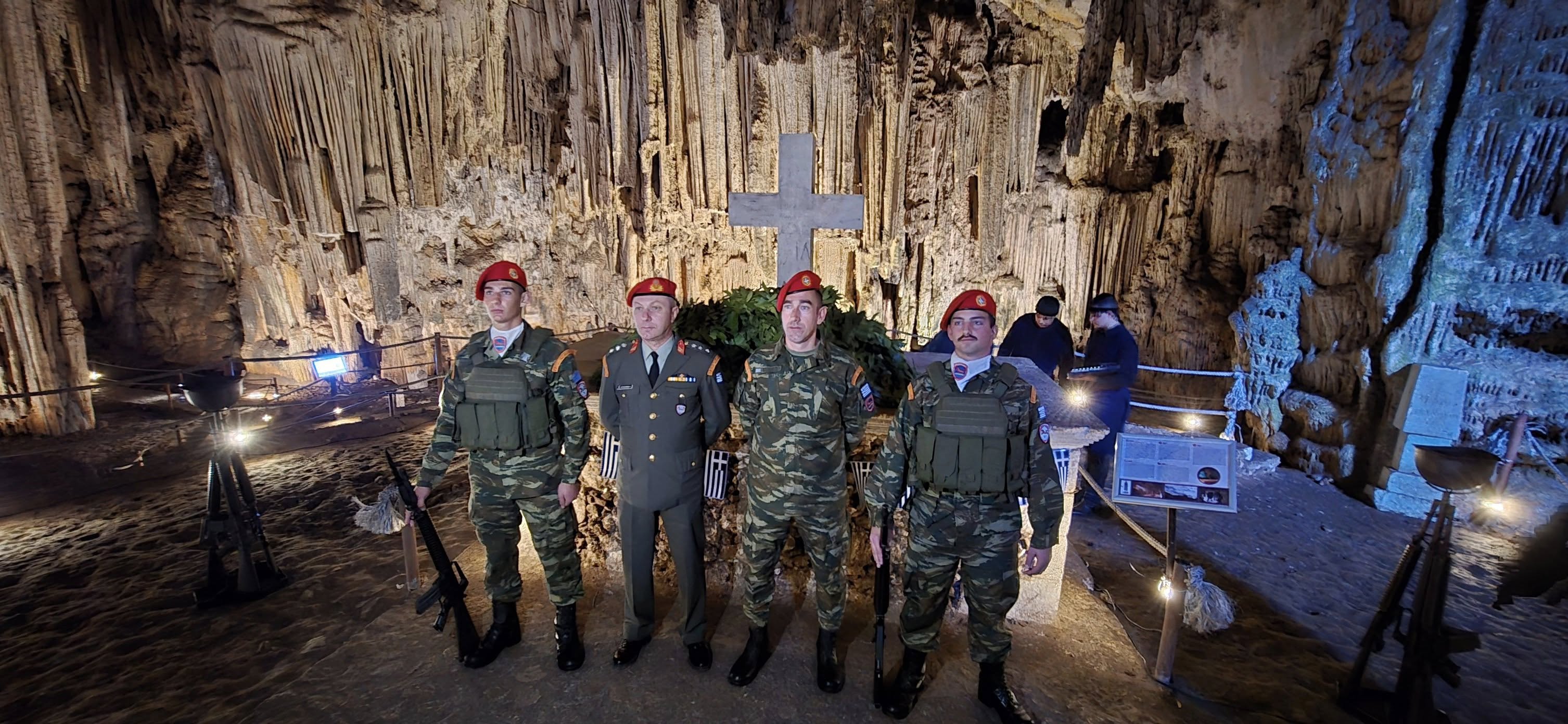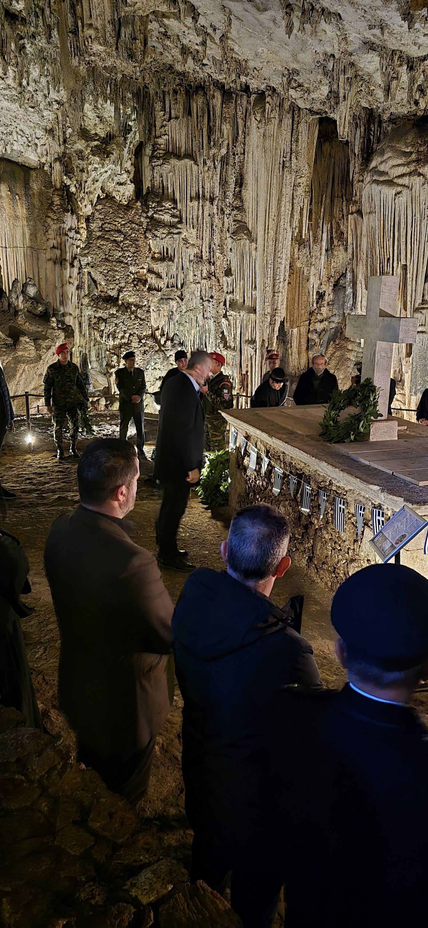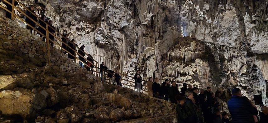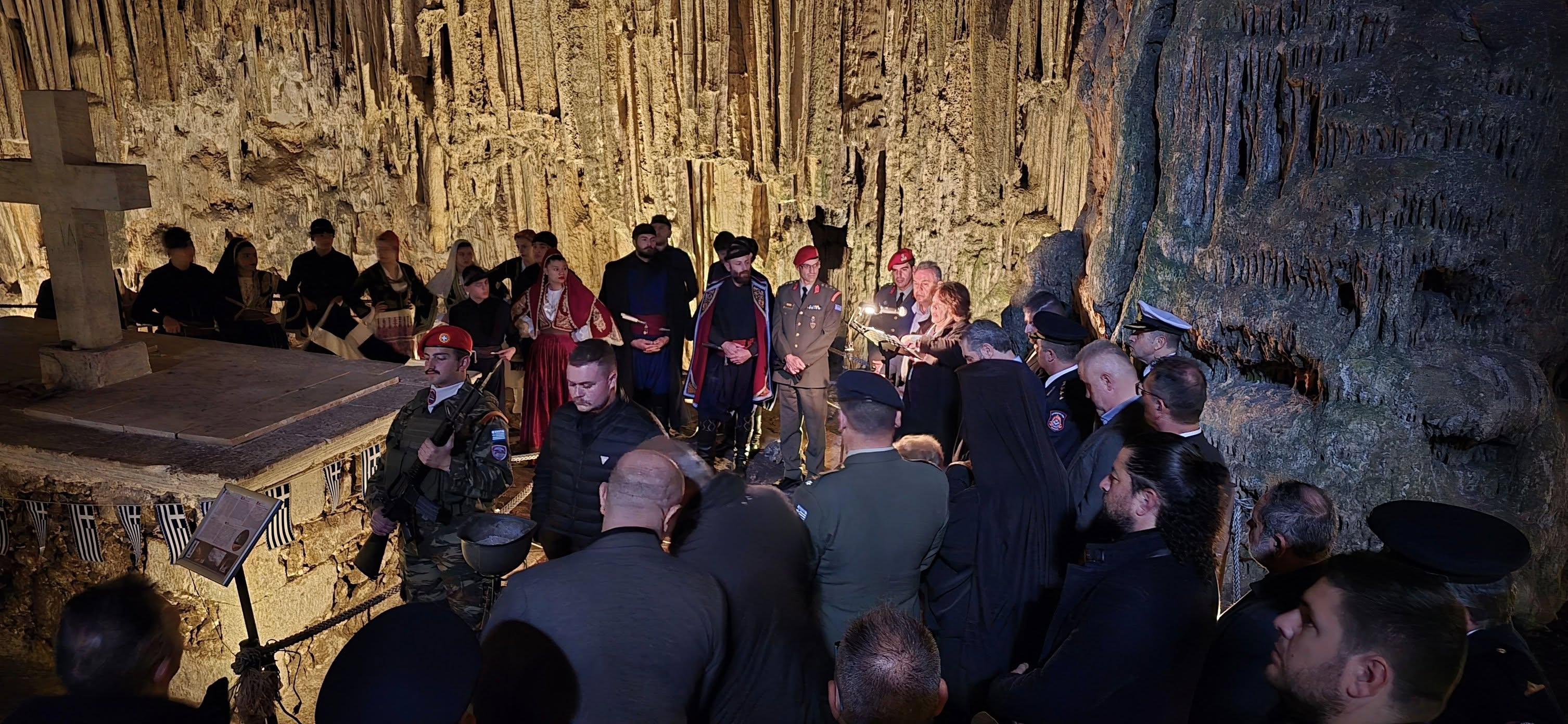 Η αψιδωτή είσοδος του σπηλαίου , μας υποδέχεται ενώ μας οδηγεί στην πρώτη αίθουσα του φαντασμαγορικού σπηλαίου που ονομάζεται "Αίθουσα ηρώων" όπου υπάρχει , όπως αναφέραμε και πιο πριν το "Μνημείoν". Ένα συγκρότημα από σταλαγμίτες αρχίζει και ξετυλίγεται σαν κουβάρι από μπροστά μας ενώ οδεύουμε προς το "Σταυροδρόμι" μπαίνοντας στο δεξιό θάλαμο . Φτάνοντας στη τεράστια αίθουσα "Πάσλεϋ" οι σταλαγμίτες και οι σταλακτίτες , δημιουργούν θαυμάσιο σύμπλεγμα και προσφέρουν ένα ονειρικό θέαμα στον επισκέπτη.