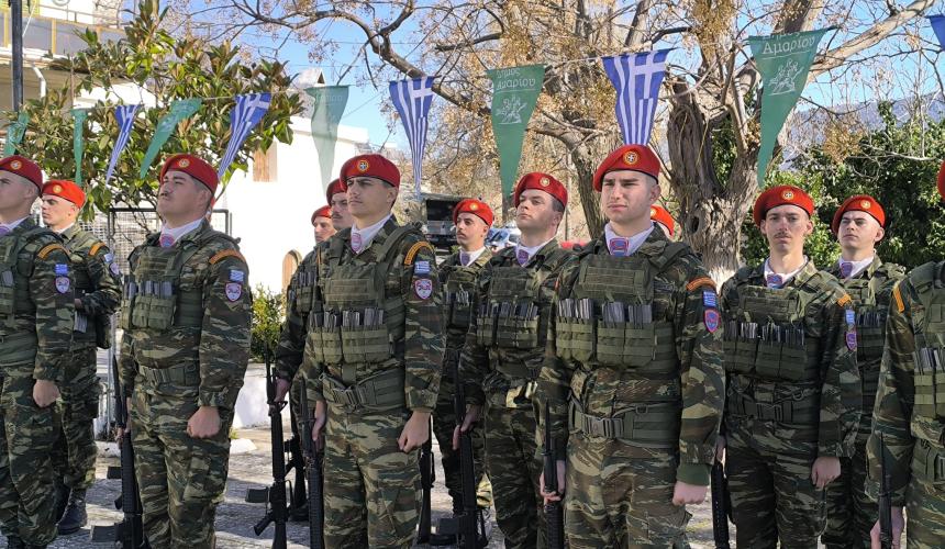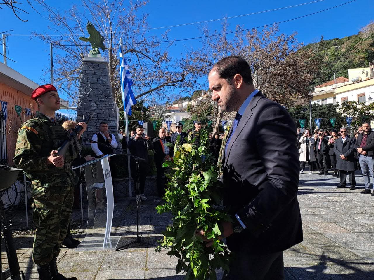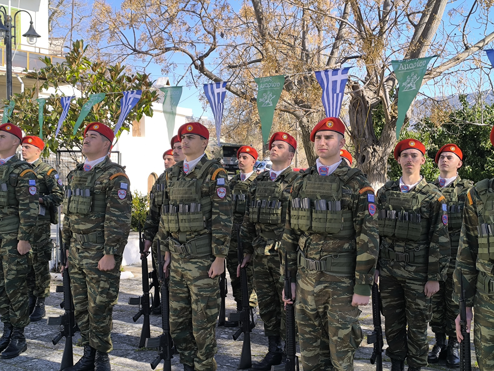 Η τελετή ξεκίνησε με την τέλεση της Θείας Λειτουργίας στον Ιερό Ναό της Παναγίας της Μερώτριας, ακολουθούμενη από επιμνημόσυνη δέηση στο Μνημείο Πεσόντων, προεξάρχοντος του εκπρόσωπου του Μητροπολίτη Λάμπης, Συβρίτου και Σφακίων, Αρχιερατικού Επιτρόπου Αμαρίου, Πρωτοπρεσβύτερου κ. Γεώργιου Καναβά.