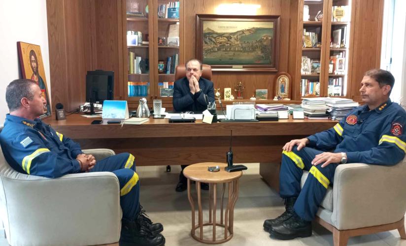 Με την ευκαιρία ευχήθηκε υγεία και δύναμη στον Πύραρχο Νικόλαο Τζανιδάκη για να ανταποκριθεί στα κρίσιμα καθήκοντα που ανέλαβε και έκανε αναμνηστικά δώρα στους δύο διοικητές που τον επισκέφθηκαν.