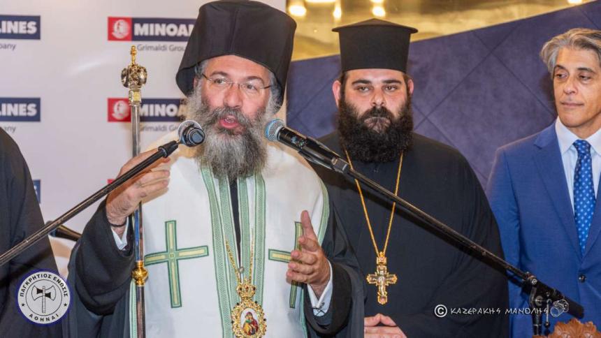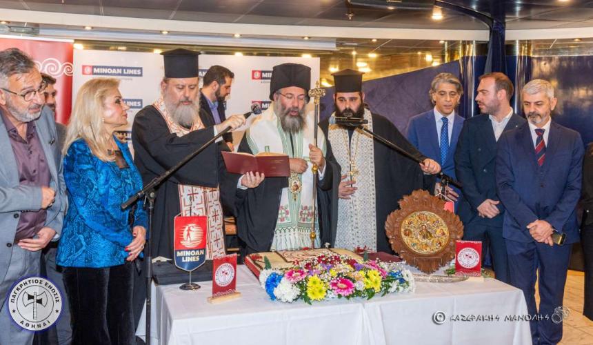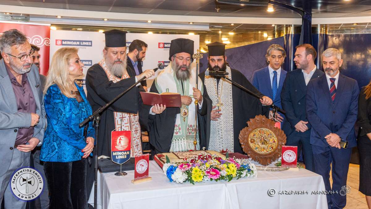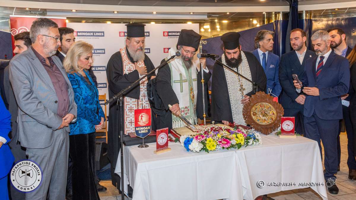 Με την κανονική άδεια και ευλογία του Σεβασμιωτάτου Μητροπολίτου Πειραιώς κ. Σεραφείμ, ο Σεβασμιώτατος Μητροπολίτης Ρεθύμνης και Αυλοποτάμου κ. Πρόδρομος, το μεσημέρι της Κυριακής, 2ας Φεβρουαρίου 2025, στο πλοίο KNOSSOS PALACE των «Μινωικών Γραμμών», στο λιμάνι του Πειραιά, ευλόγησε την Αγιοβασιλόπιτα της Παγκρητίου Ενώσεως.