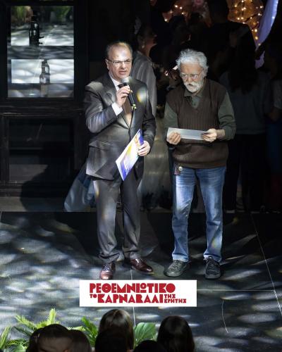 Η απονομή της τιμητικής διάκρισης έγινε από τον Δήμαρχο Ρεθύμνης κ. Γιώργη Μαρινάκη, ο οποίος αναφέρθηκε στην ουσιαστική συμβολή του τιμώμενου στην καρναβαλική και δημιουργική ιστορία της πόλης μας.
