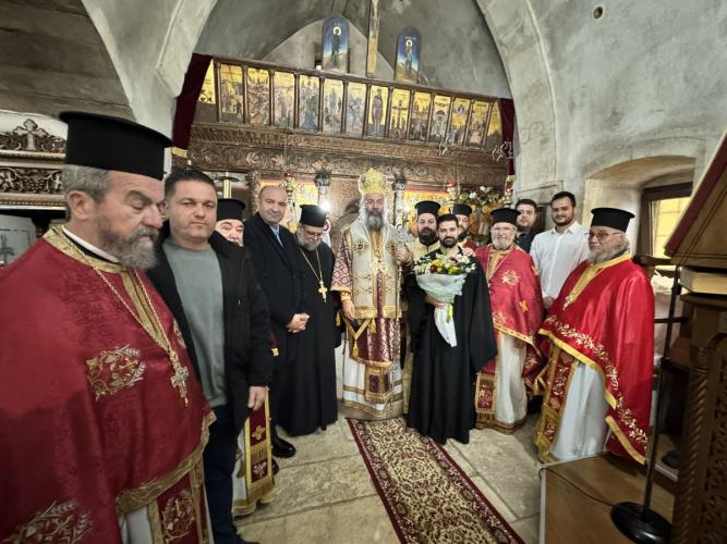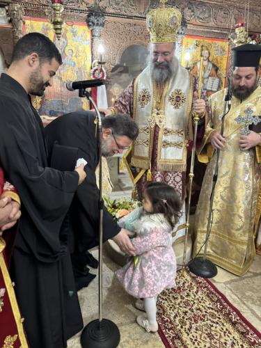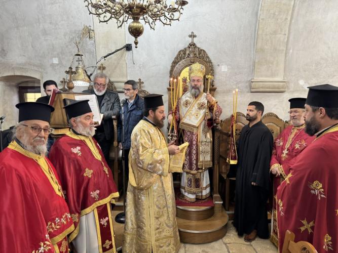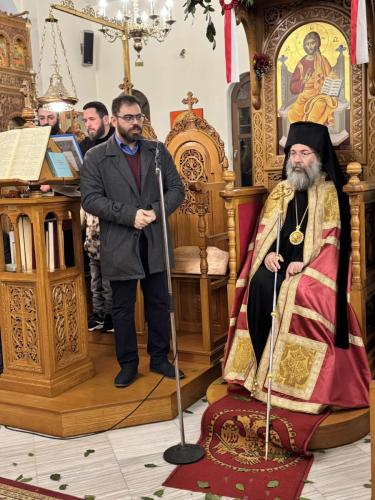 Προ της απολύσεως της Θείας Λειτουργίας, ο Σεβασμιώτατος εξέφρασε τις θερμές ευχαριστίες του προς τον απερχόμενο Εφημέριο της Ενορίας, Αιδεσιμολ. Πρωτοπρεσβύτερο Δημήτριο Καραγιαννάκη, ο οποίος ανέλαβε καθήκοντα Προϊσταμένου στον Ιερό Ενοριακό Ναό Αγίων Κωνσταντίνου και Ελένης πόλεως Ρεθύμνης.