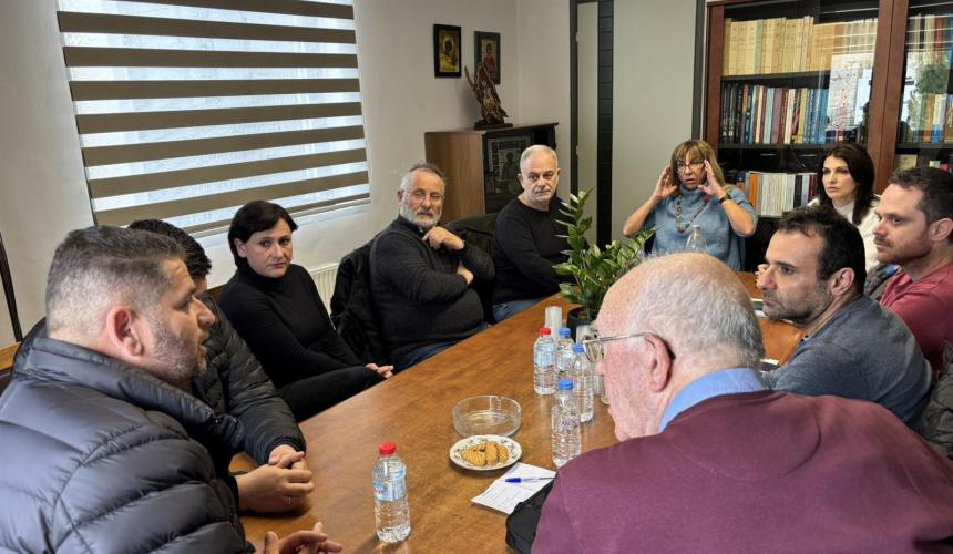 Συνάντηση με τους Δήμαρχο και Αντιδήμαρχο, υπεύθυνο για θέματα Παιδείας, Μυλοποτάμου κκ Γ. Κλάδο και Δ. Μιχόπουλο είχε κατόπιν σχετικού αιτήματος το Δ.Σ. της ΕΛΜΕ Ρεθύμνου στο δημαρχείο Περάματος την Παρασκευή 14 Φεβρουαρίου. Παρόντες/παρούσες στη συνάντηση ήταν οι διευθυντές των ΓΕΛ Πανόρμου και ΕΠΑΛ Γαράζου κκ Μ. Ζαχαράκης και Δ. Τριανταφύλλου, η διευθύντρια του Γυμνασίου κα Εύα Βρεττού και οι ειδικοί σύμβουλοι του Δήμου Μυλοποτάμου κ. Εμμ. Σκλαβούνος και κα Γ. Παπαδάκη.