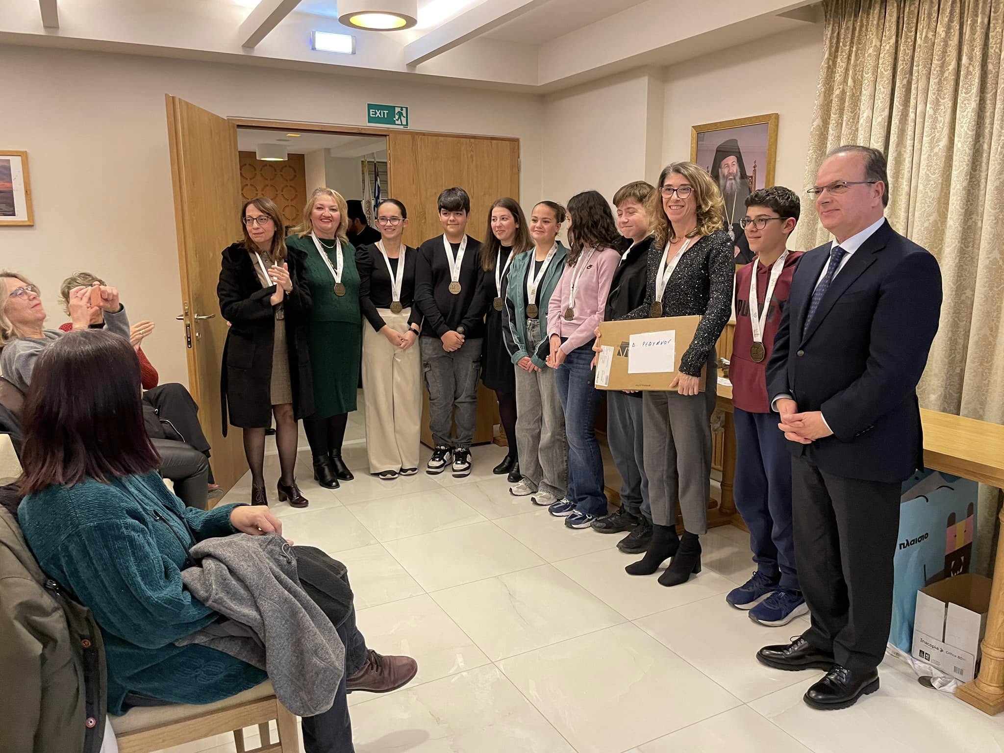 Στους εκπαιδευτικούς κ. Αντρέα Κουρμούλη και κ. Δημήτρη Καραμπίνα, υπεύθυνους Φυσικής Αγωγής Δευτεροβάθμιας και Πρωτοβάθμιας εκπαίδευσης αντίστοιχα, για το συντονισμό της απονομής.