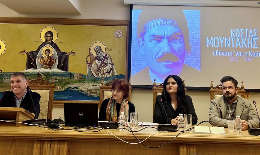 Στο τέλος της εκδήλωσης ο κ. Φώτης Παπαδόπουλος προσέφερε συμβολικά την αφίσα του Κυνηγιού της Δευτεροβάθμιας για να επιδοθεί στον γιο του Κώστα Μουντάκη, τον κ. Μάνο Μουντάκη, ο οποίος βρίσκεται στην Αθήνα. Ο γνωστός σε όλους μας λυράρης ήταν ο αοιδός, το κεντρικό πρόσωπο του παιχνιδιού.