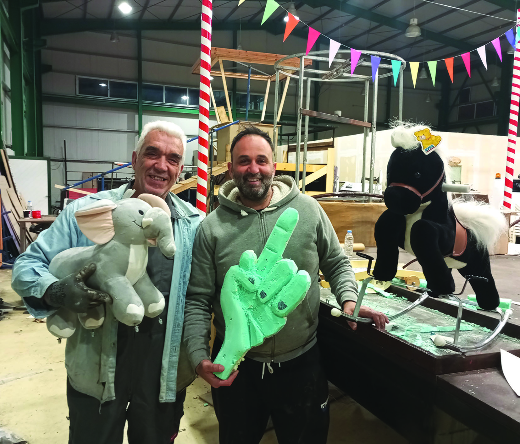 Τις τελευταίες νύχτες οι αποθήκες των αρμάτων είναι γεμάτες κόσμο. Από ανθρώπους που δημιουργούν, βάζουν τις τελευταίες του πινελιές, ελέγχουν τις λεπτομέρειες τους και βεβαίως εργάζονται γλεντώντας σαν μια μεγάλη παρέα!
