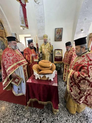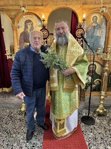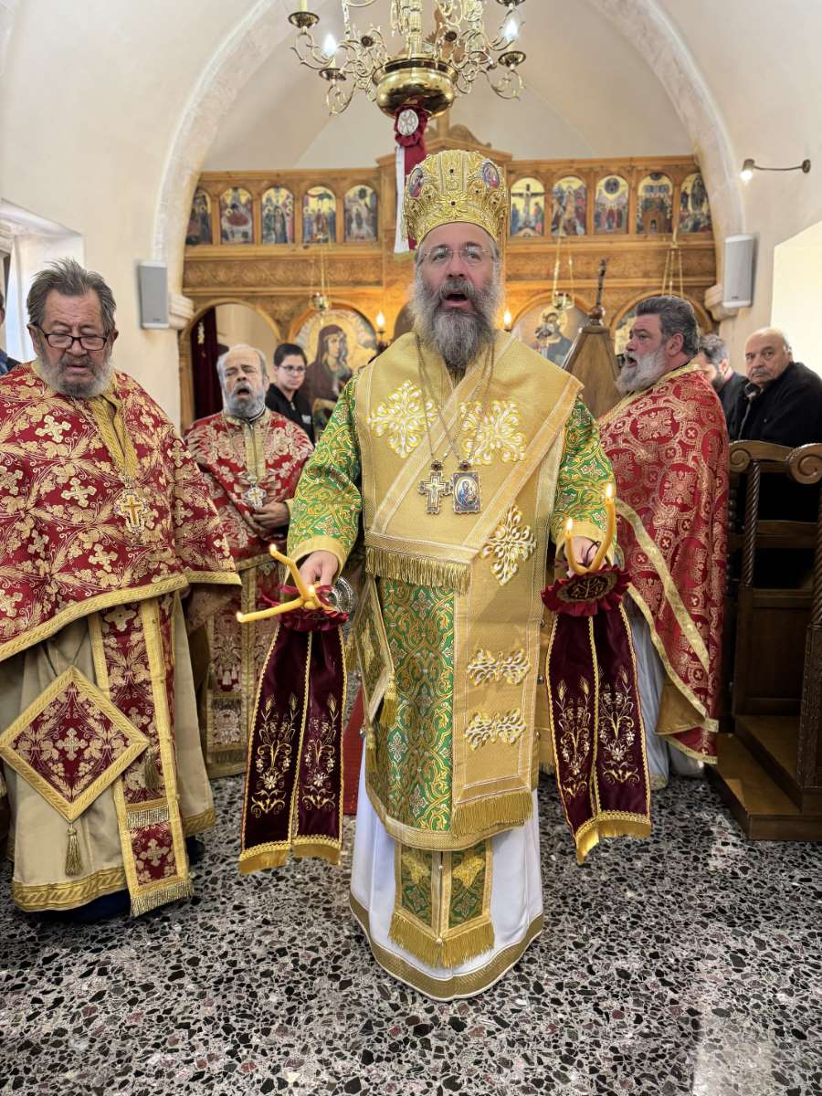 Προ της απολύσεως της Θείας Λειτουργίας, ο καλός και δραστήριος Εφημέριος, Αιδεσιμολ. Πρωτοπρεσβύτερος Χαρίλαος Τζαγκαράκης με συγκινητικούς λόγους προσφώνησε τον Σεβασμιώτατο Ποιμενάρχη μας κ. Πρόδρομο, καλωσορίζοντάς τον για πρώτη φορά στην Ενορία αυτή και διερμηνεύοντας τα αισθήματα αγάπης του μικρού αλλά ευλογημένου αυτού ποιμνίου.