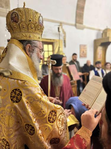 Ο Σεβασμιώτατος, τέλος, με λόγους καρδιακούς, εξέφρασε τη χαρά και την ευχαριστία του για την όμορφη αυτή λειτουργική συντυχία, συνεχάρη τον π. Παναγιώτη για το ωραίο επιτελούμενο έργο στην Ενορία και την ευγένειά του να τιμήσει έναν εκ των μακαριστών προκατόχων του και ομίλησε κατάλληλα προς το εκκλησίασμα, ευχόμενος καλή Τεσσαρακοστή, προσθέτοντας στην όμορφη προσλαλιά του υποψηφίου κληρικού κ. Πέτρου Κουκλάκη, ο οποίος, κατά προτροπήν του Σεβασμιωτάτου, κατά την ώρα του Κοινωνικού, ομίλησε περί της ευαγγελικής περικοπής της Κρίσεως.