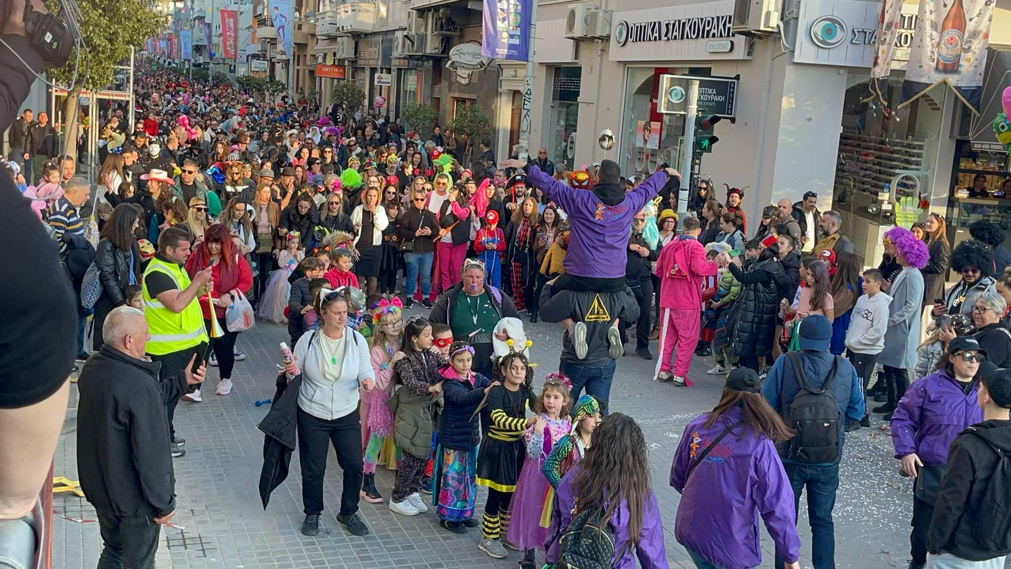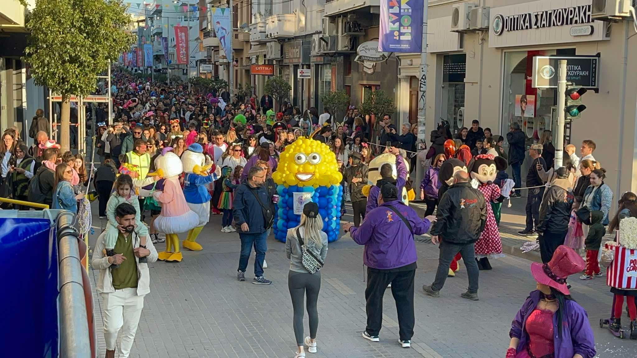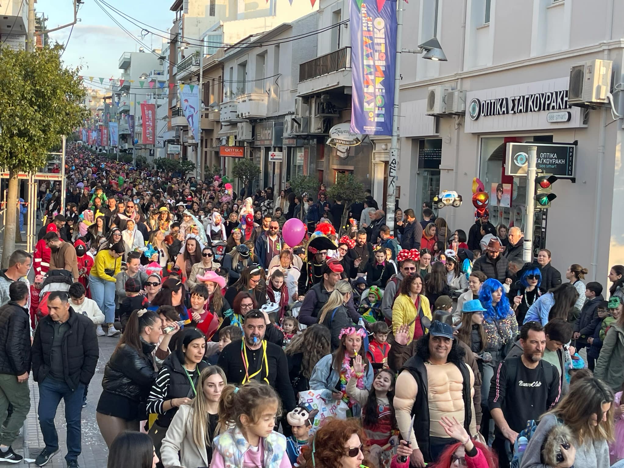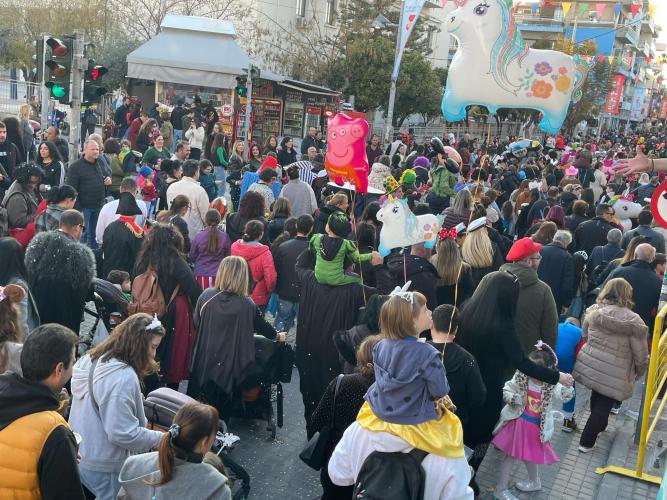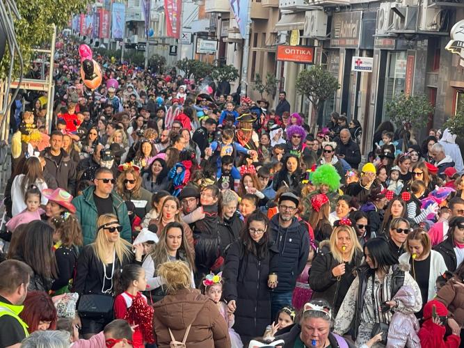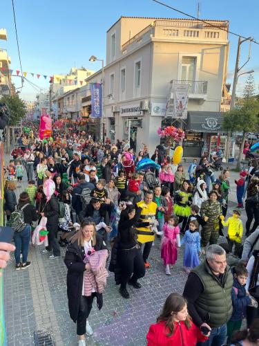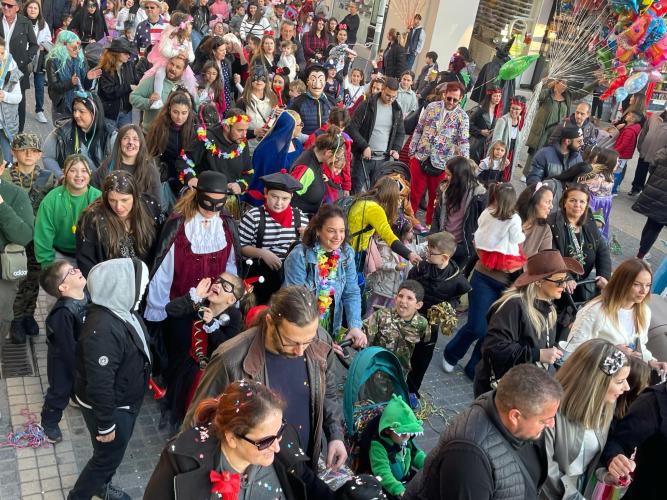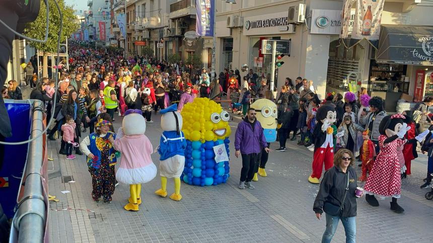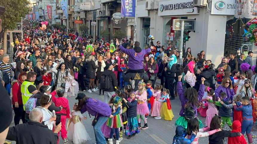 Εκατοντάδες παιδιά με τους γονείς τους παρέλασαν στην Λεωφόρο Κουντουριώτη δίνοντας το έναυσμα για την μεγάλη νυχτερινή παρέλαση που ακολουθεί το βράδυ του Σαββάτου.