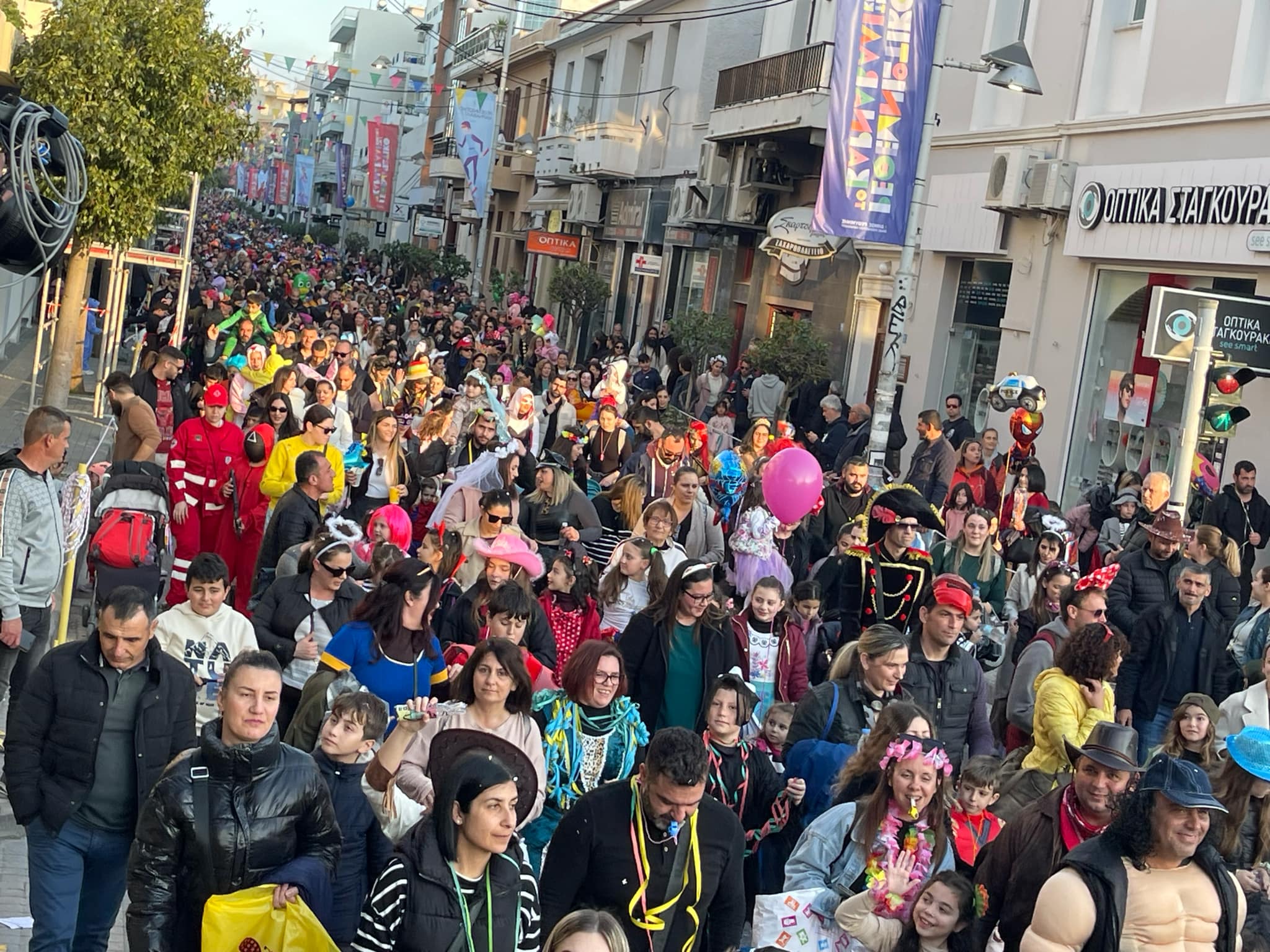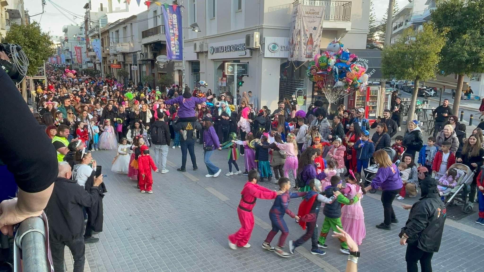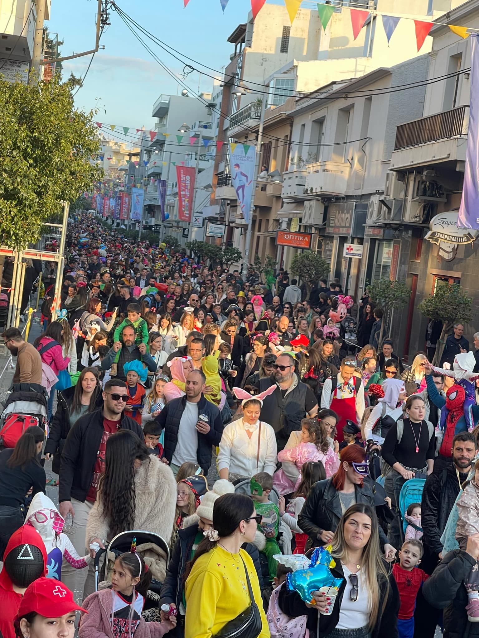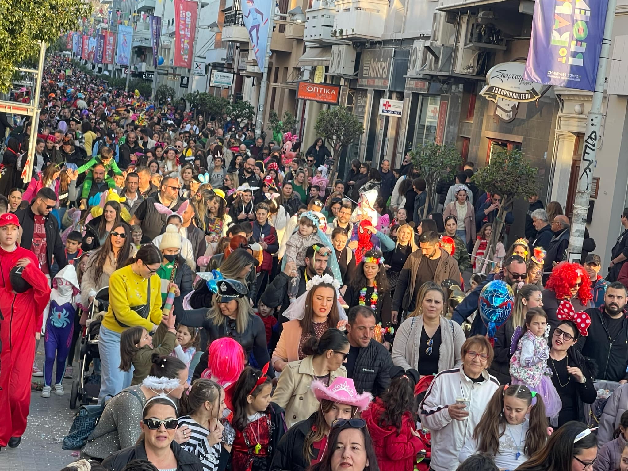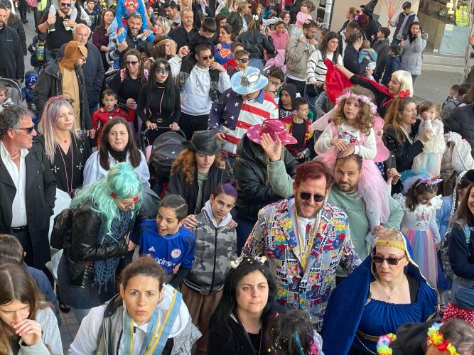 Εκατοντάδες παιδιά με τους γονείς τους παρέλασαν στην Λεωφόρο Κουντουριώτη δίνοντας το έναυσμα για την μεγάλη νυχτερινή παρέλαση που ακολουθεί το βράδυ του Σαββάτου.