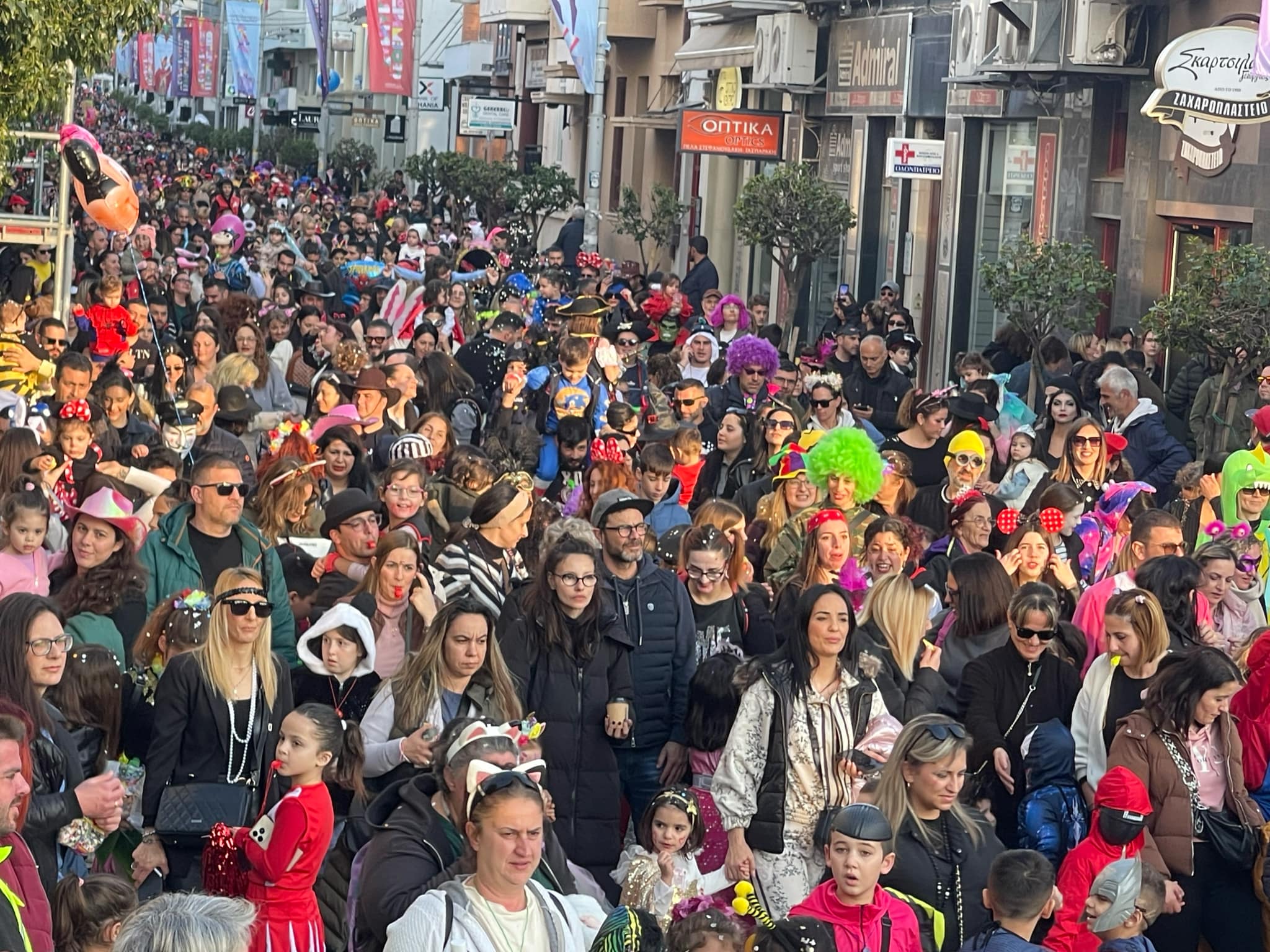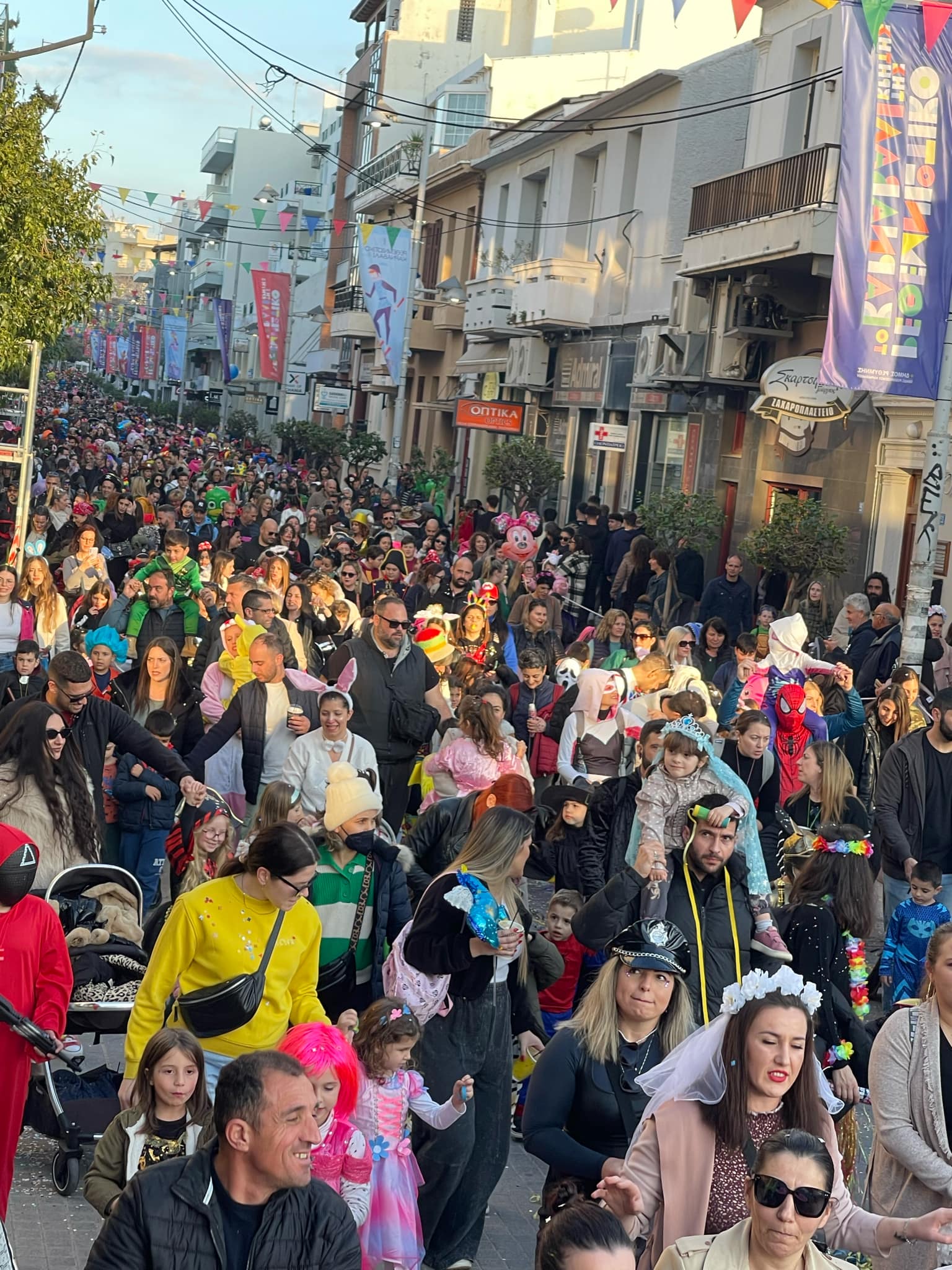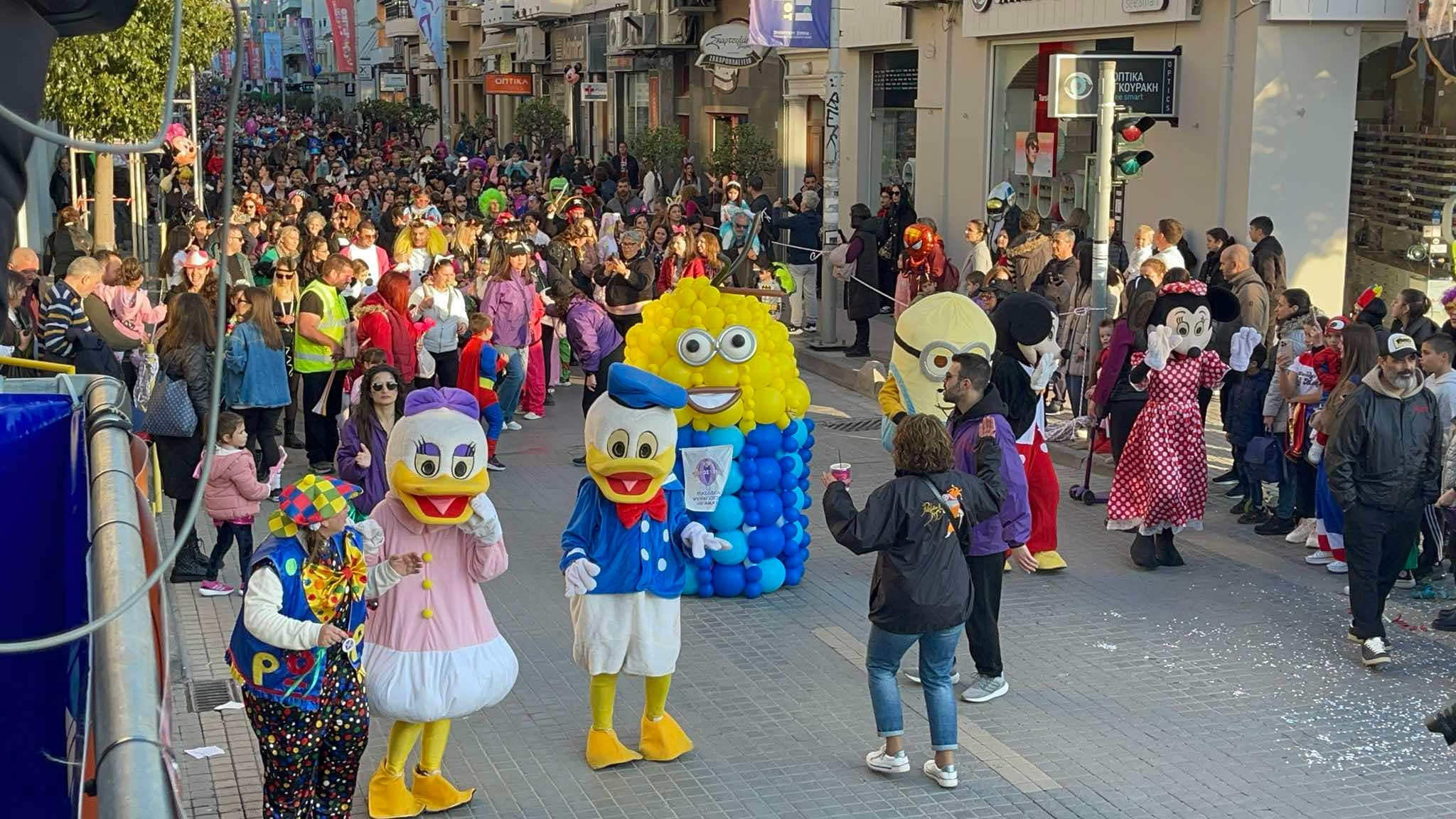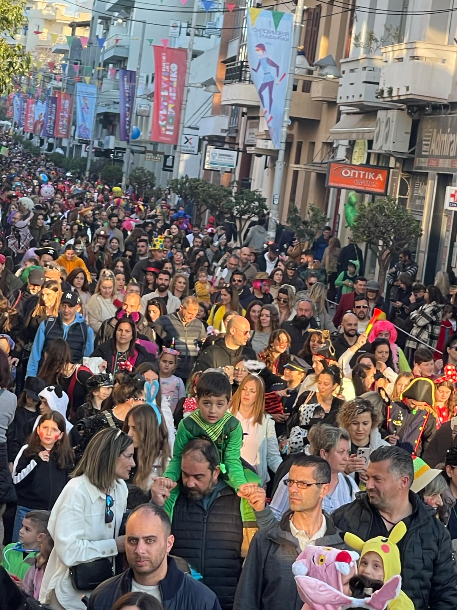 Εκατοντάδες παιδιά με τους γονείς τους παρέλασαν στην Λεωφόρο Κουντουριώτη δίνοντας το έναυσμα για την μεγάλη νυχτερινή παρέλαση που ακολουθεί το βράδυ του Σαββάτου.