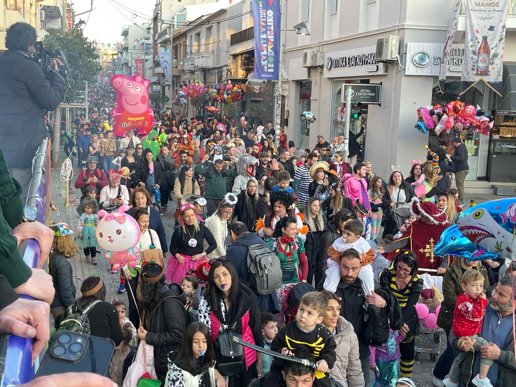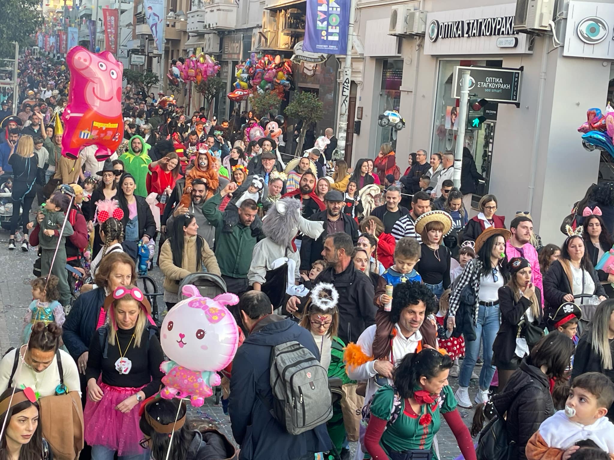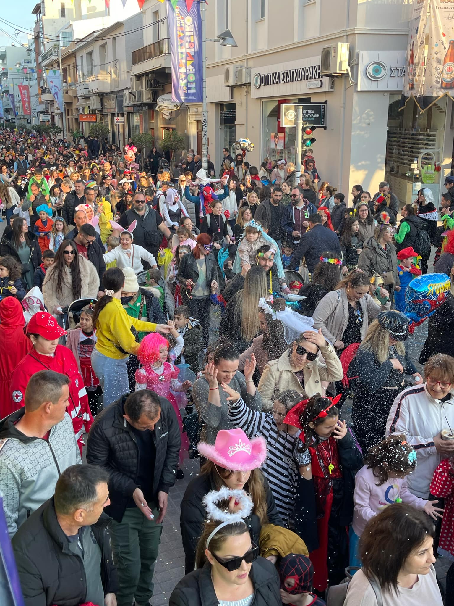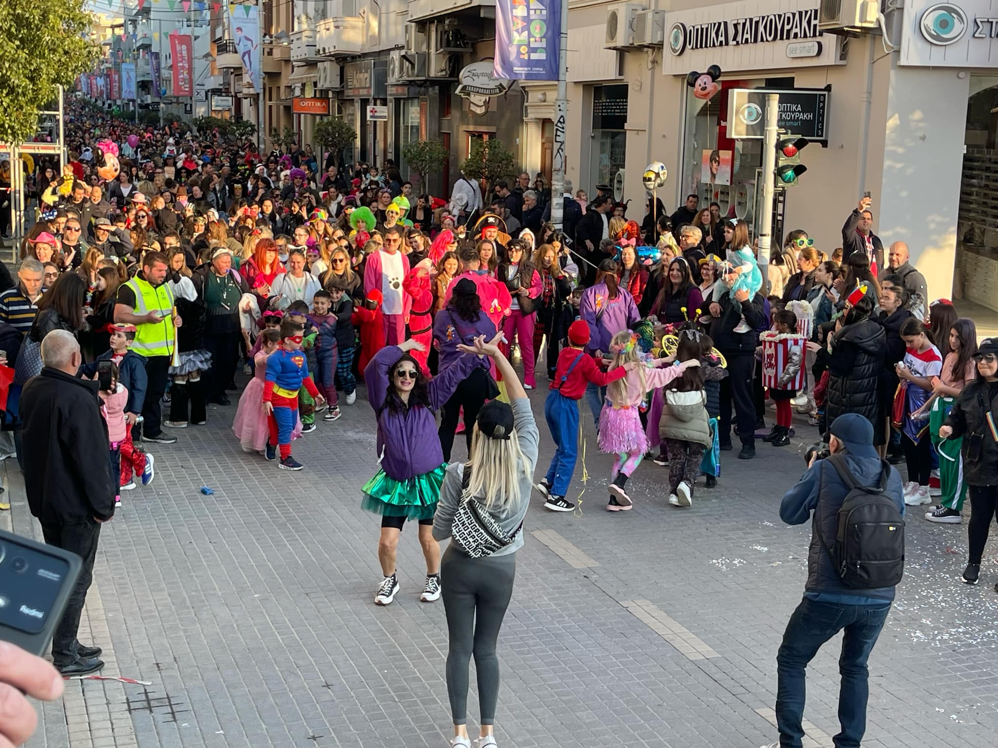 Εκατοντάδες παιδιά με τους γονείς τους παρέλασαν στην Λεωφόρο Κουντουριώτη δίνοντας το έναυσμα για την μεγάλη νυχτερινή παρέλαση που ακολουθεί το βράδυ του Σαββάτου.