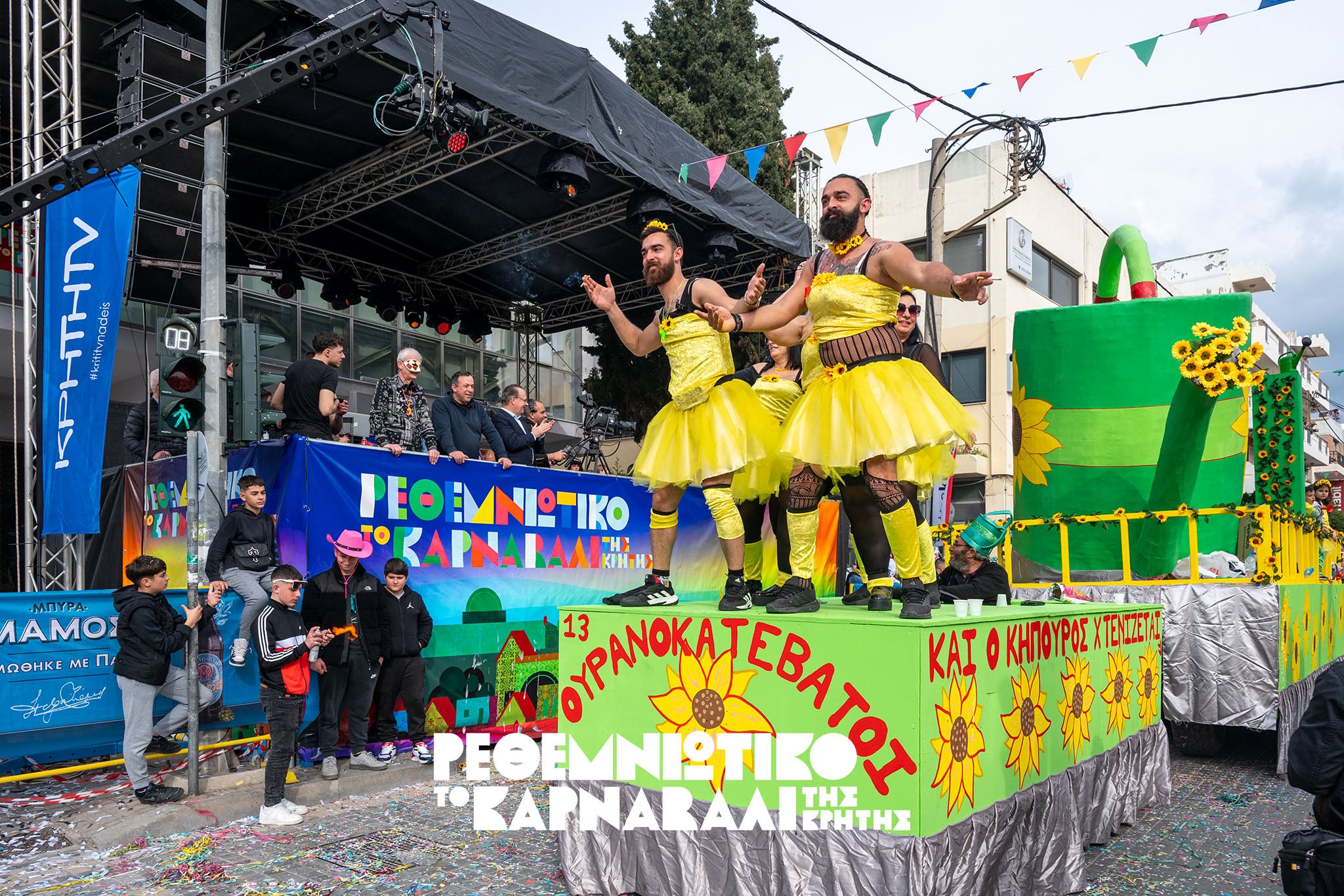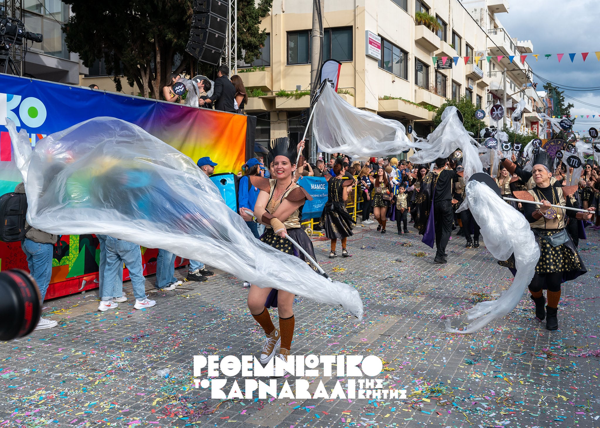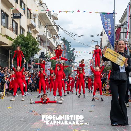 Την αυλαία της μεγάλης καρναβαλικής γιορτής στις κεντρικές λεωφόρους του Ρεθύμνου έκανε η χοροθεατρική ομάδα γενικής γυμναστικής «team fourteen» με προπονήτρια την Λιάνα Γεωργοπούλου.