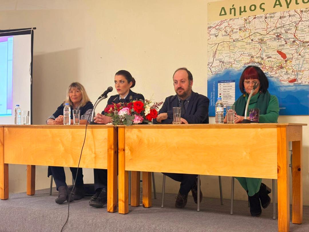 -«Ενέργειες ανταπόκρισης στο φαινόμενο της ενδοοικογενειακής βίας» από την Αστυνόμο Α’ Αθηνά Καραδάκη, εκ μέρους της Διεύθυνσης Αστυνομίας Ρεθύμνου.