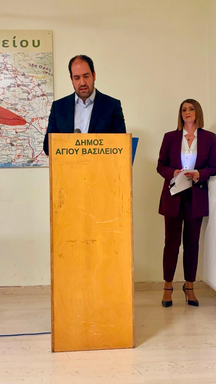 Ο Δήμαρχος Αγίου Βασιλείου Γιάννης Ταταράκης, καλωσορίζοντας τους παρευρισκόμενους, τόνισε τη δέσμευση του Δήμου στην προώθηση της ισότητας των φύλων και στην ουσιαστική στήριξη των γυναικών που βρίσκονται αντιμέτωπες με βία και διακρίσεις, αναφέροντας ότι «οι εκλεγμένες γυναίκες με την Δημοτική μας Παράταξη είναι 7 σε σύνολο 16 δημοτικών συμβούλων δηλαδή το 44%. Εγώ προσωπικά δεν συγκρότησα ένα ψηφοδέλτιο τοποθετώντας γυναίκες μόνο για λόγους ποσόστωσης όπως επιβάλει ο νόμος.Πιστεύω βαθιά στις ικανότητες τους και στη συμβολή τους και αυτό επίσης αποδεικνύεται από το γεγονός ότι σήμερα οι 3 από τους 5 Αντιδημάρχους είναι γυναίκες ενώ όλες οι υπόλοιπες έχουν αναλάβει καίριες θέσεις, γεγονός που αποτυπώνει τη σταθερή μας βούληση για την ενίσχυση της γυναικείας παρουσίας στα κέντα λήψης των αποφάσεων» Επίσης ο Δήμαρχος τόνισε ότι η αντιμετώπιση της ενδοοικογενειακής βίας αποτελεί προτεραιότητα και πως πέρα από τις ήδη υπάρχοντα προγράμματα, ο Δήμος θα προχωρήσει σε ακόμα περισσότερες δράσεις. Κλείνοντας την ομιλία του, ο Δήμαρχος έστειλε ένα μήνυμα ότι: «Καμία γυναίκα μόνη απέναντι στη βία. Ο Δήμος μας είναι και θα είναι πάντα δίπλα σας. Μαζί δημιουργούμε μια κοινωνία ισότητας, αλληλεγγύης και ασφάλεια για όλους».